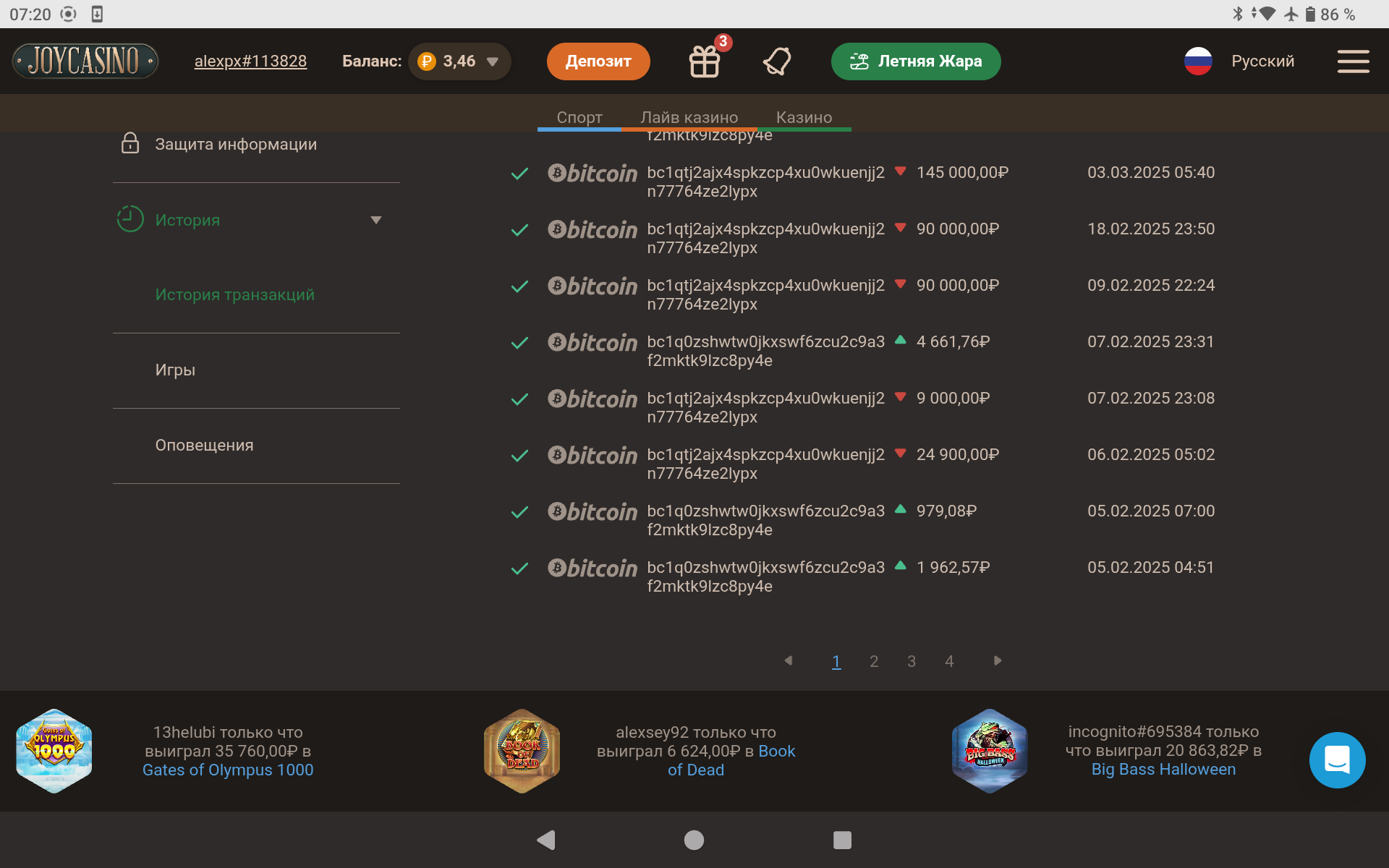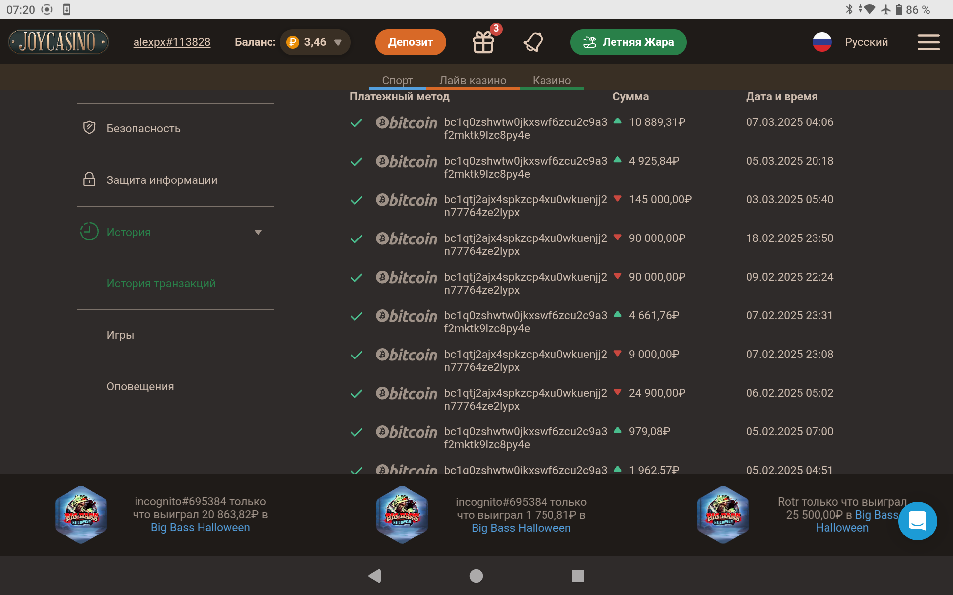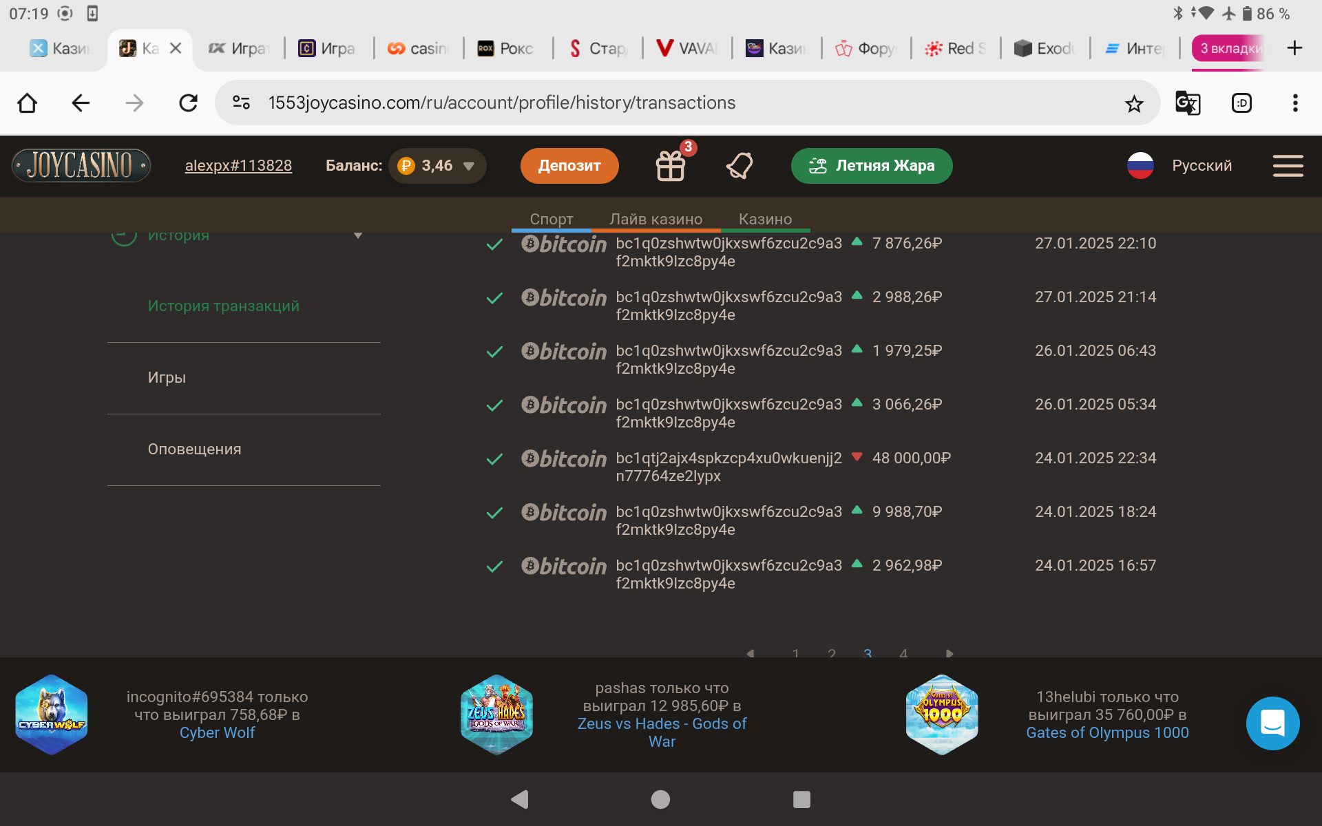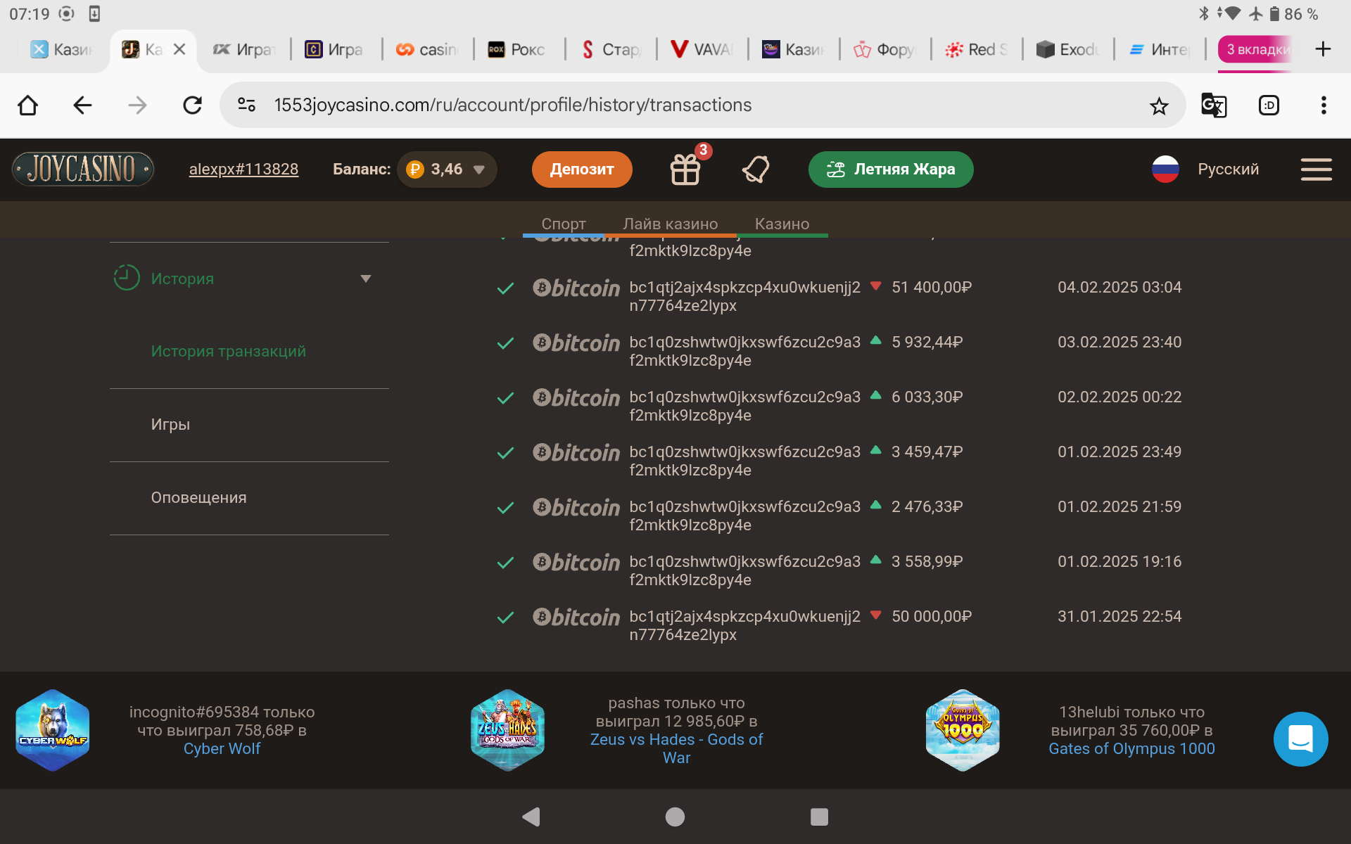 Ниже скриншоты,ранее в Джое сливал,теперь свое отбил и ещё и в плюсе ,но мне никто ничего не «скручивает» к слову по отдаче,как это принято делать в ру он лайн казях повсеместно ,т.к у Джой-Икса миллион полтора играющих минимум «висит» регулярно играющих профилей и конкурентов у них в принципе Нет!Да и лояльность у них на Высоте,всегда в профиле или подарки в фриспинах появляются,замечу бездепозитных также часто !!!!что любит наш брат игровой😀 или бонусные предложение от 100-150-200%,а то и даже 250% под деп с вагером на 25-30 Карл!!!Ну а открутка Вагера и условия которые все знают👍так это вообще считаю Сказка на сегодняшний день в сети,сами все знаете.А вообще по опыту заметил,что поши каждого игрока стараются сохранить и уважать,что говорит о очень качественной поддержки и грамотной работе менеджмента.Но это было лишь мое,небольшое мнение маленькое😀скажем так!)))Каждый сам решает,как говорится….Но конечно мнений будет много и здесь есть те,кто зол на них это понятно и будут сейчас накатывать на них и про rtp🤣 и про прочее,у каждого свои претензии,но в отличии от разного рода скамо-скрипто мест, где я сам играл ,Джой-Икс это именно Лицензионные он-лайн казино с историей и именем,надёжность по выплатам также на максимальной высоте,платят без разговоров Всегда и Всем!Не было в принципе ещё никогда и ни у кого к ним вопросов по выплатам!К слову,букмекерские у пошей тоже зачётные, соответственно и часто предложения бонусные беттерам часто подарками прилетают!