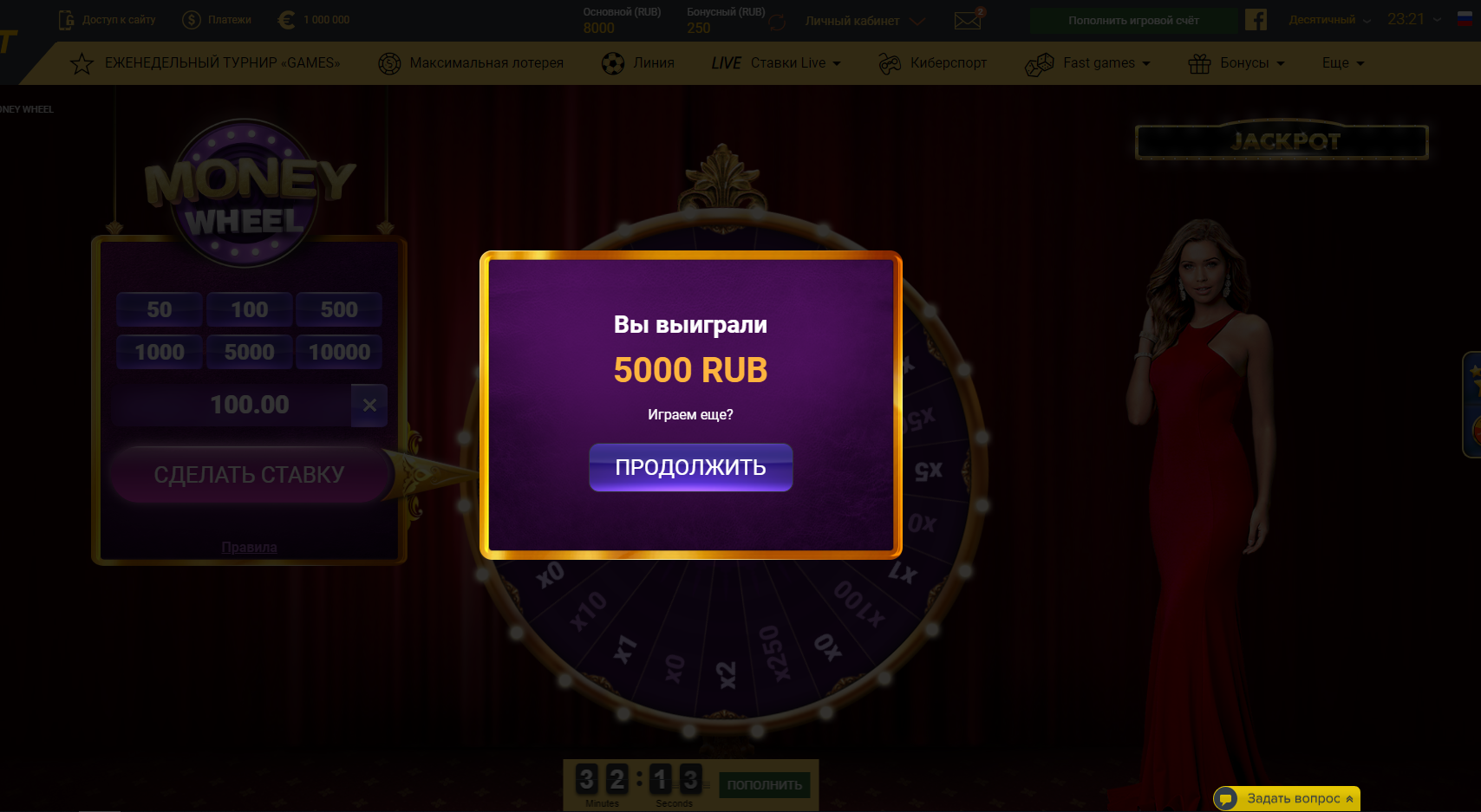 МелБет. Умножение конечно небольшое, но меня порадовало то, что депозит был 250 рублей всего)) Буквально за 10 минут какое-то непонятное колесо накидало 13к. Жаль вывел только восемь. Кстати вывели без всякого гемороя за 15-20 минут.