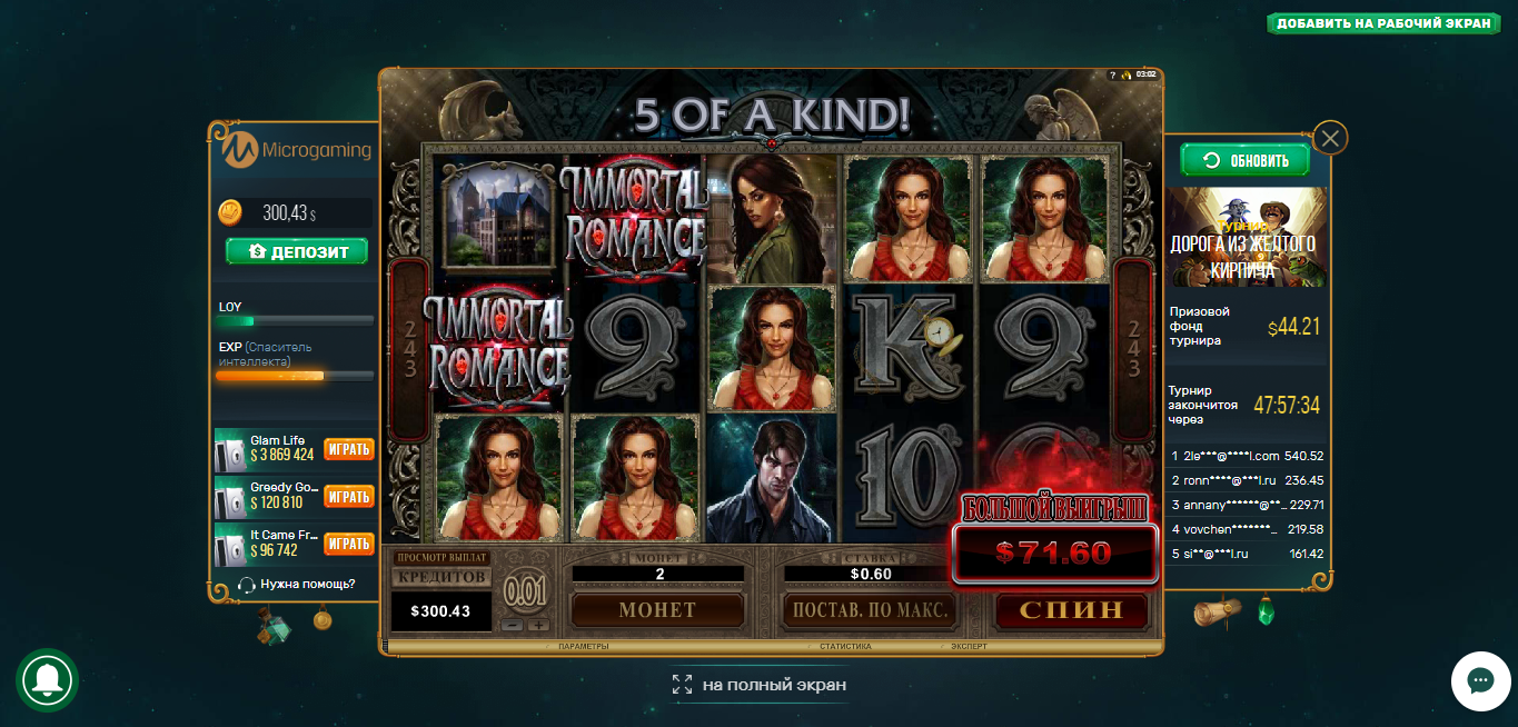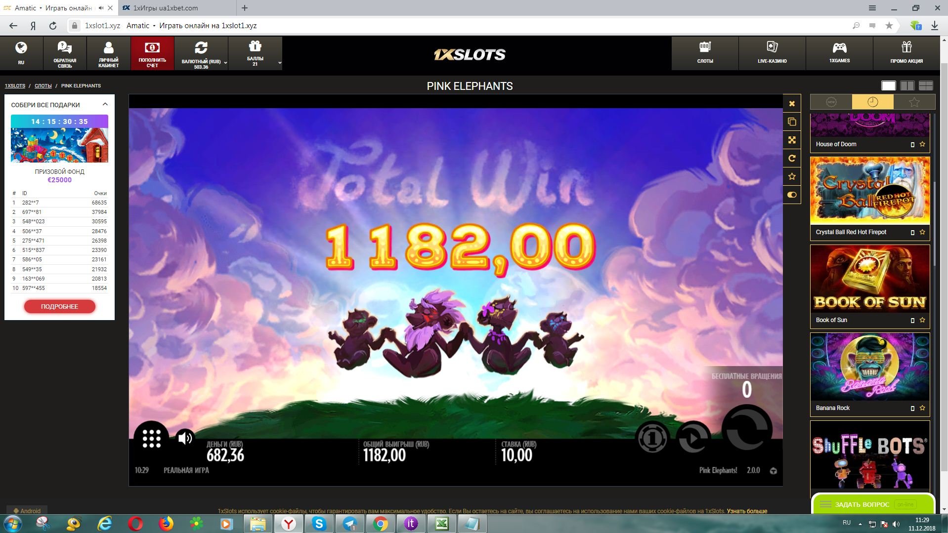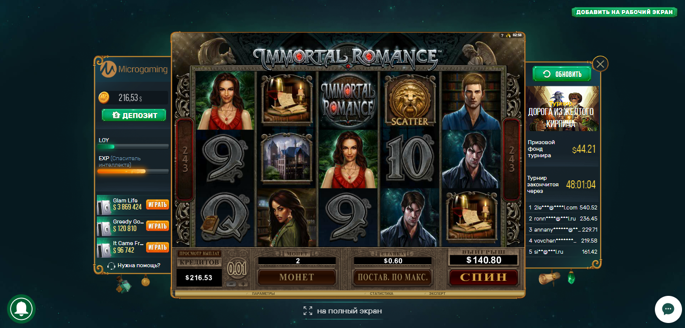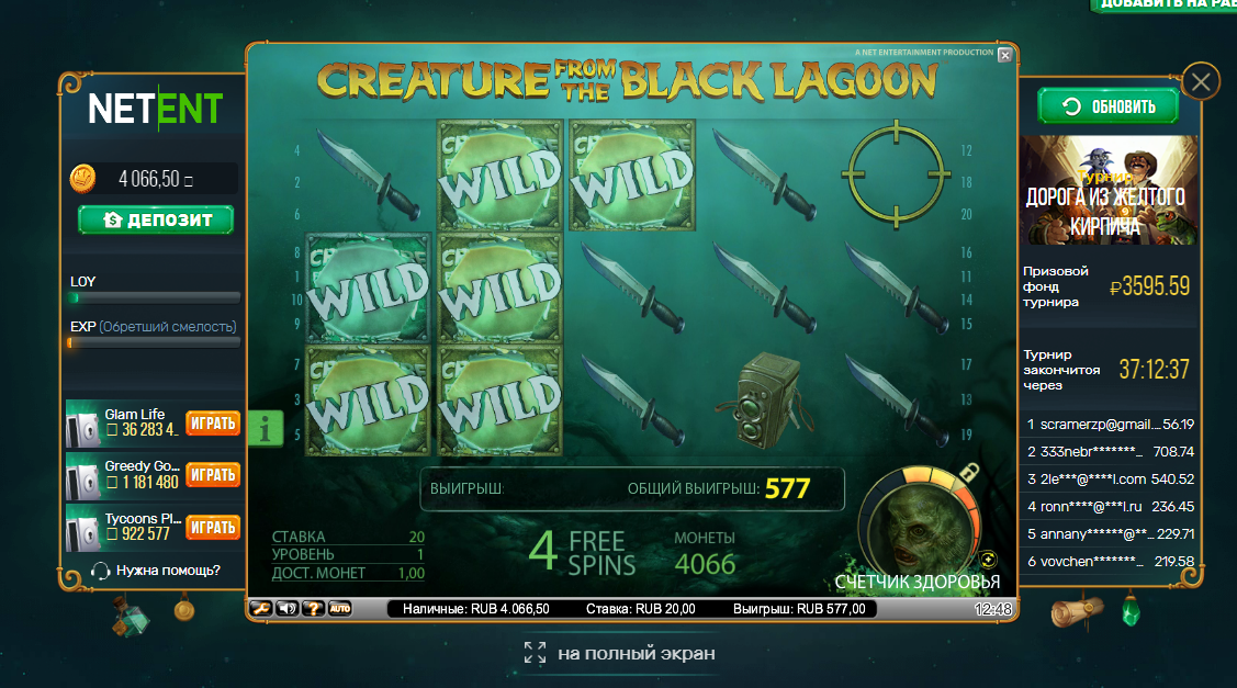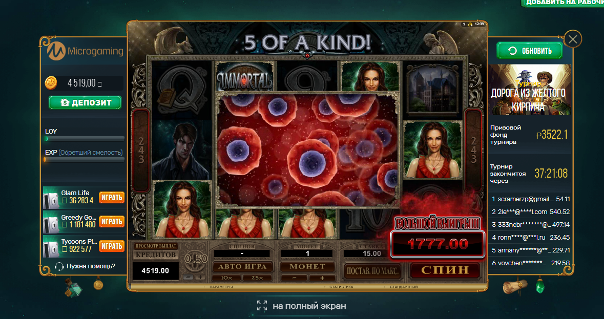 пришло письмо с зиги, 20 лояльных спинов, насыпало с них 50 руб, пошёл в плей бой по 1,50 рубля, поймал бонуску на 200+, потом пошёл в ДоА также поймал х200+ по 4,50, затем по чуйке в иммортал и капли на х278, 4к на вывод)