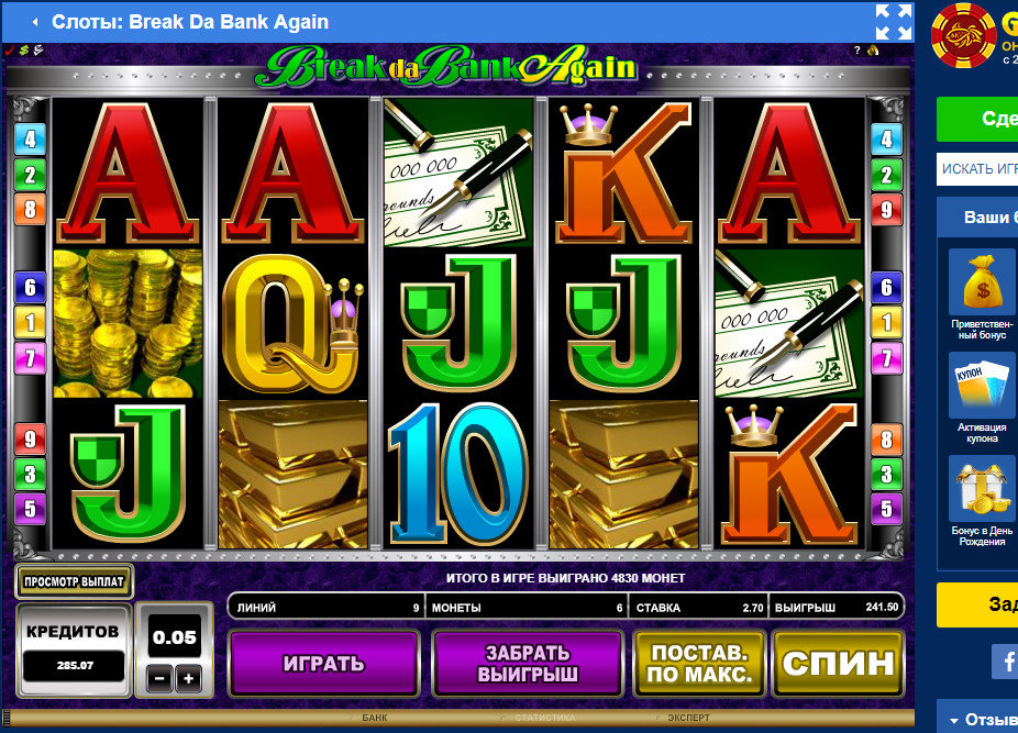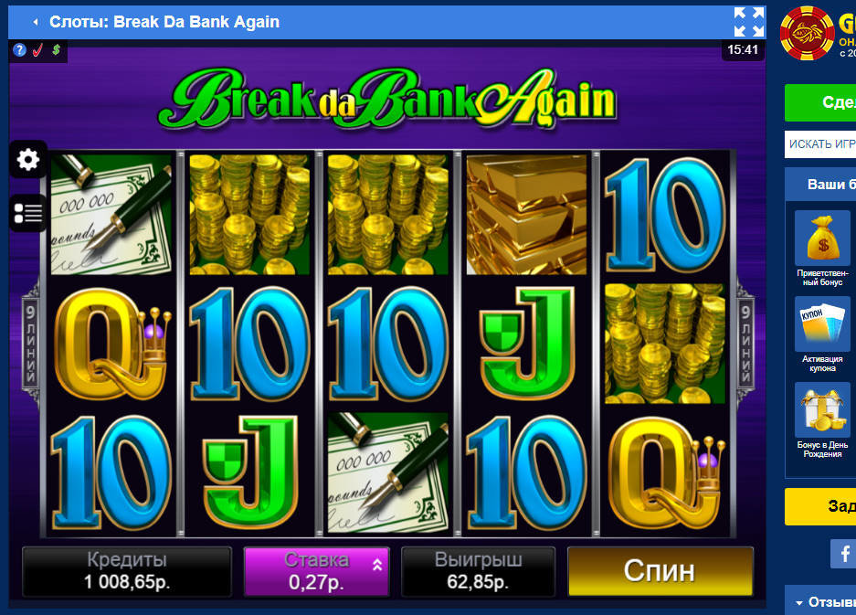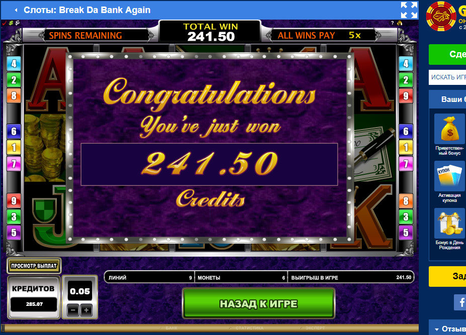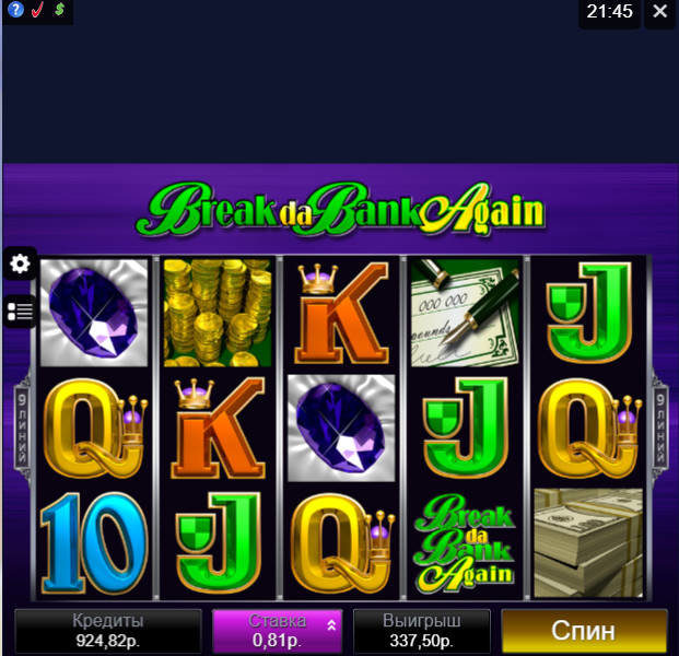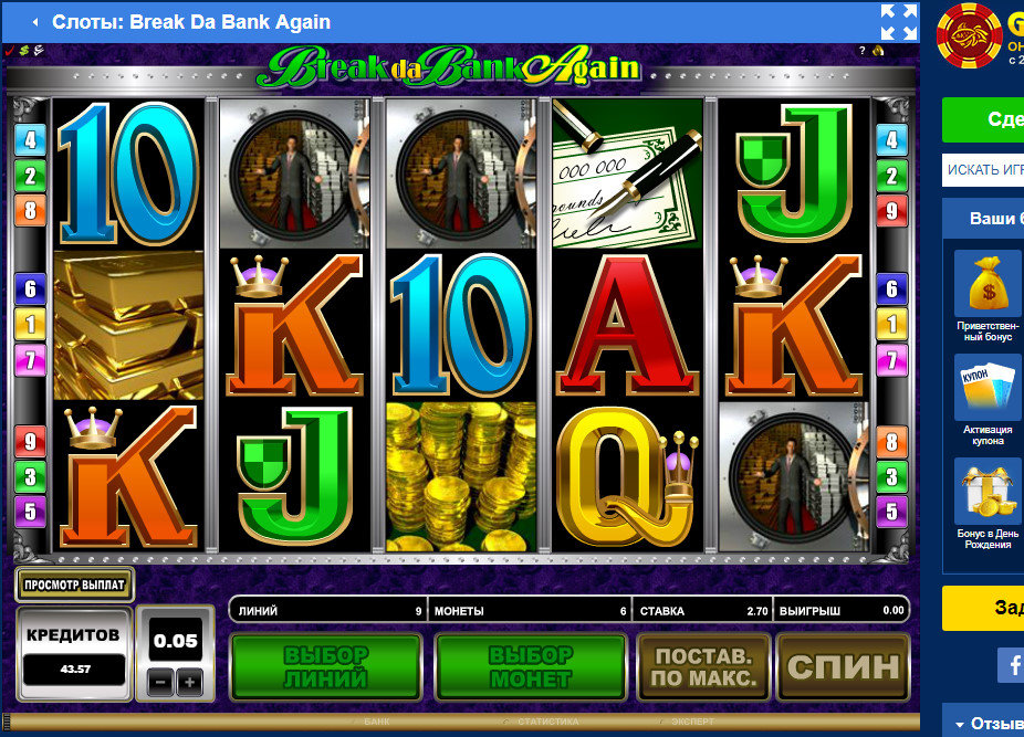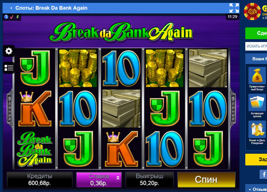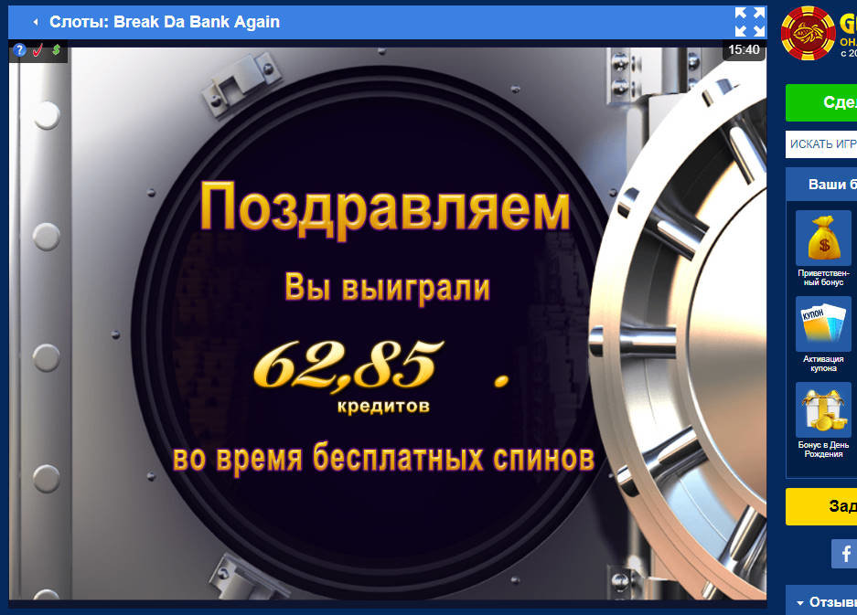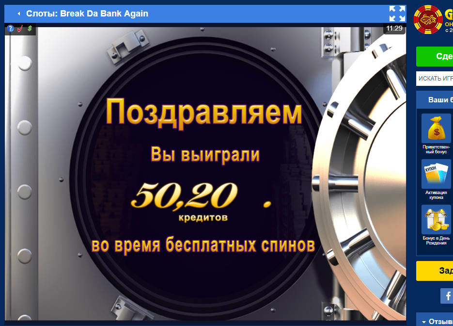 После вывода выигрыша остались пару копеек, увеличил баланс на рулетке до 50р и заглянул в слот «Ограбь Банк Снова». И на втором спине зацепил «бонуску» 😉