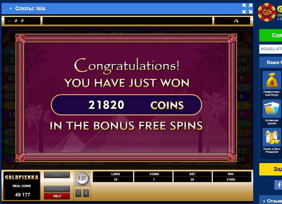 ГолдФишка ставка 0,25 выигрыш где то КУ х>800 😎