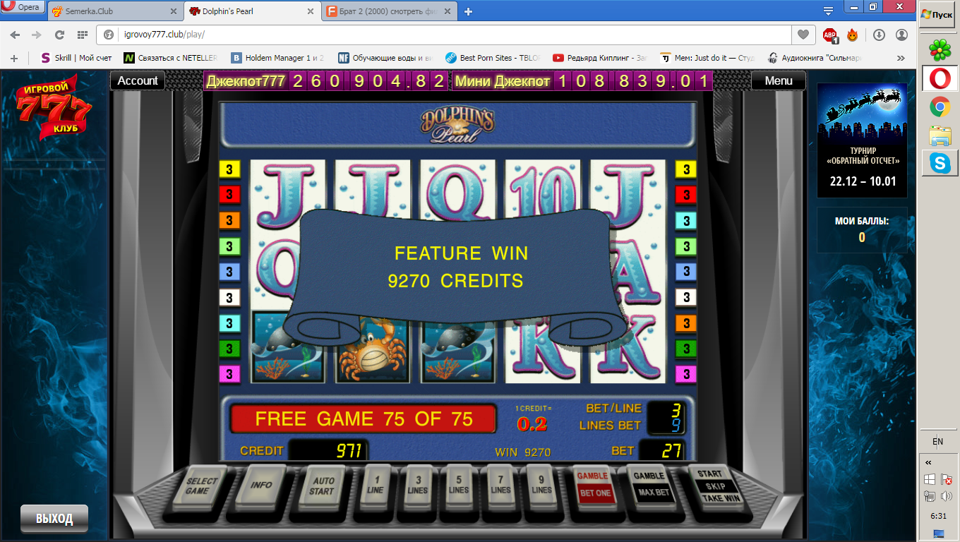 А сегодня хороший человек помог мне бо без копейки сидел, думюа раз бабки есть нужно не много депнуть в игройро777, короче депнул 377 рублей, когда оставалось примерно 40 рублей, выдало это. 75 фри спинов 1 разх дало 4 скатера в фри спинах,