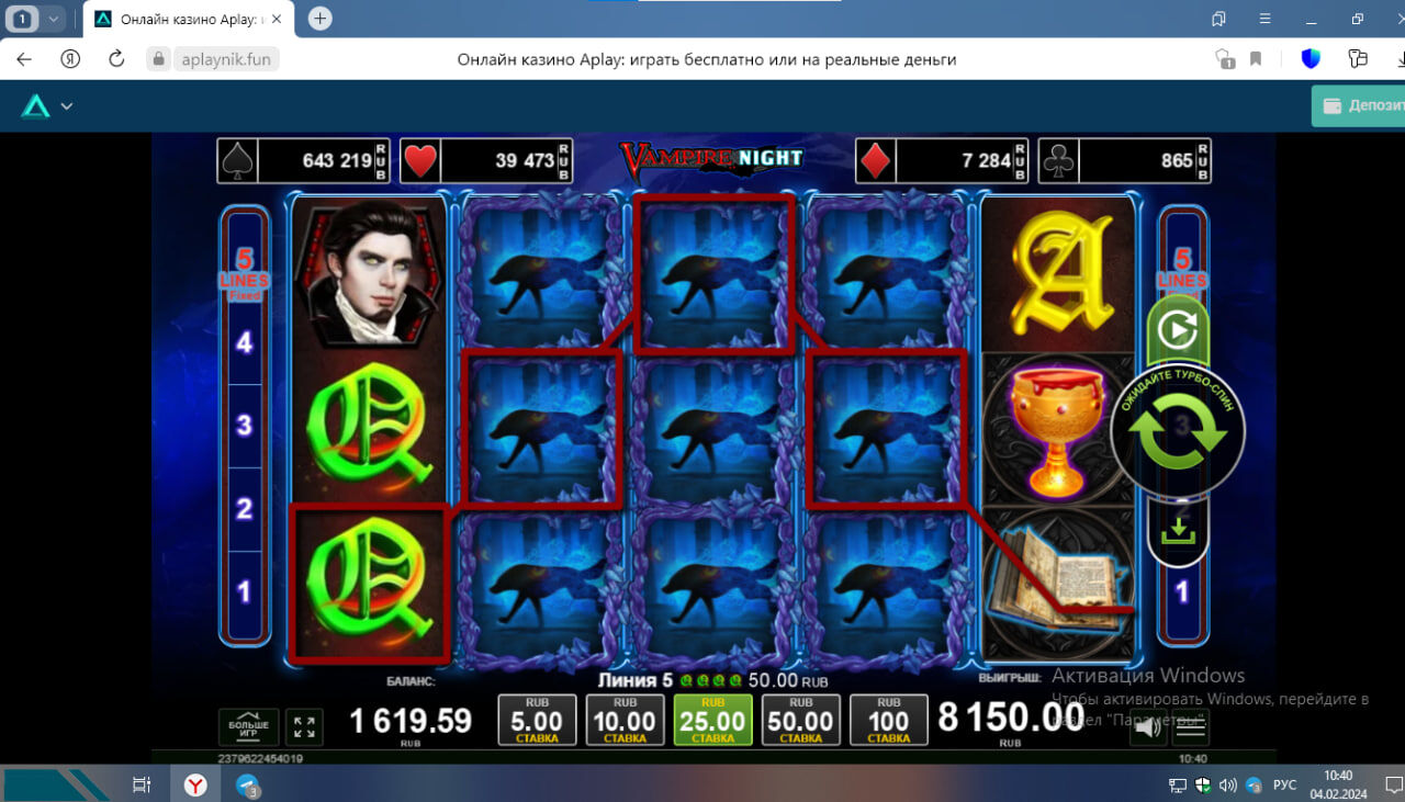 Казино Vavada Слот — book of dead. Ставка 200 р , х 202