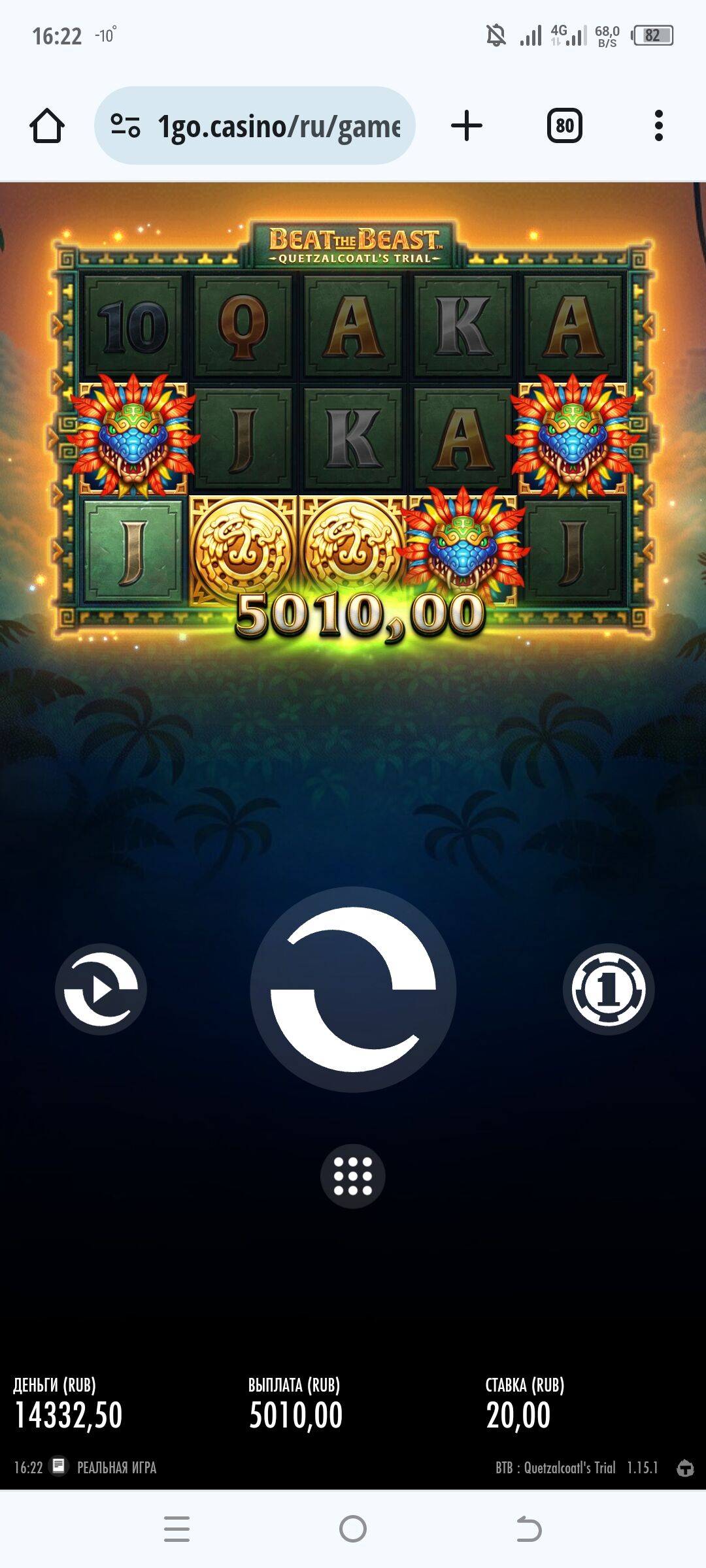 Казино LuckyDreams дали 10 бездеп спинов, с которых получилось 0.50 центов. С 4 спина выпала бонуска по 0.05 центов и дала х5000 по 1 линии)