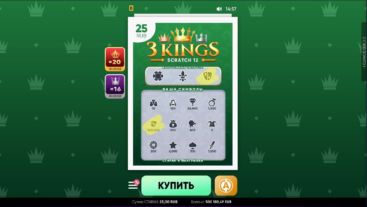 Выигрыш 500000 (х20000)