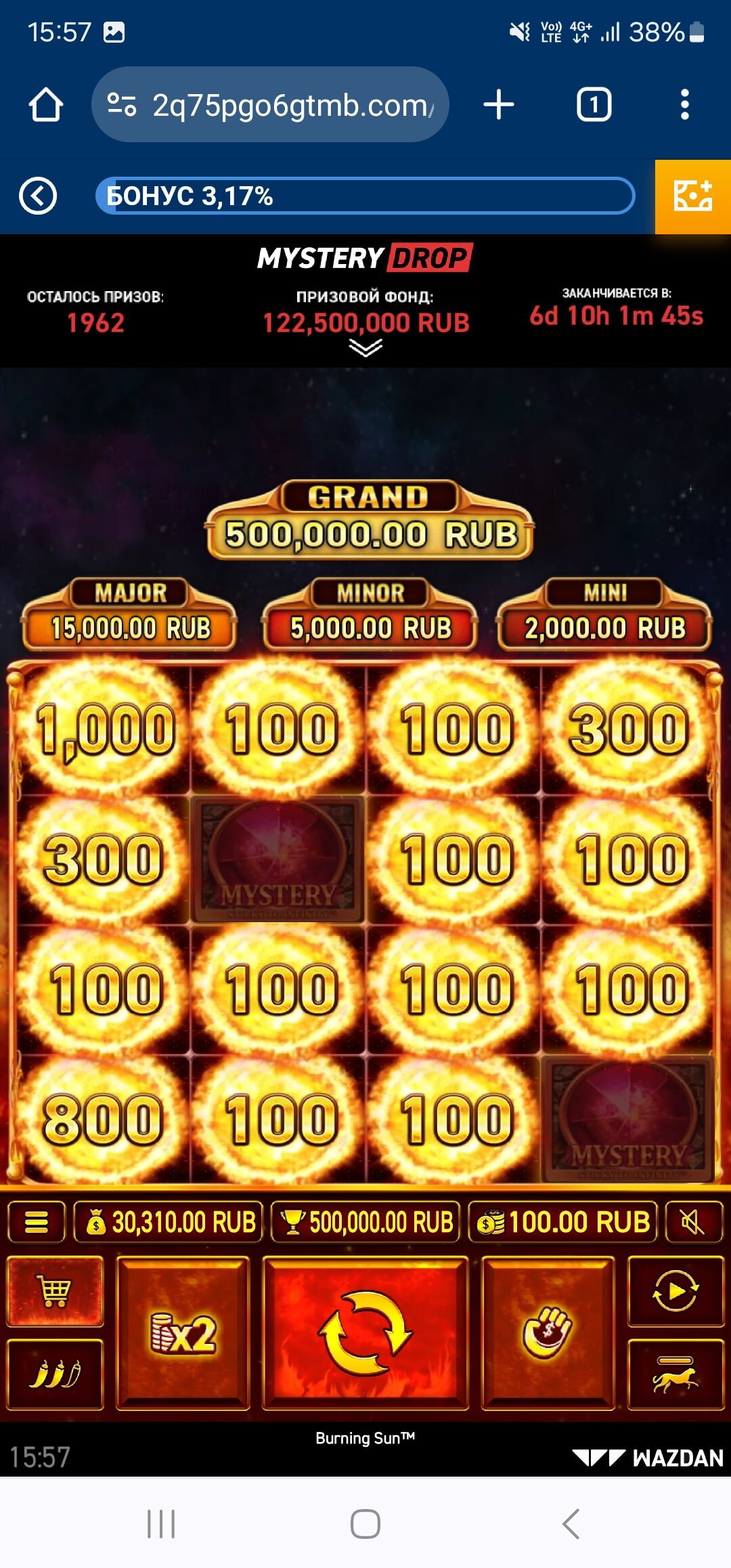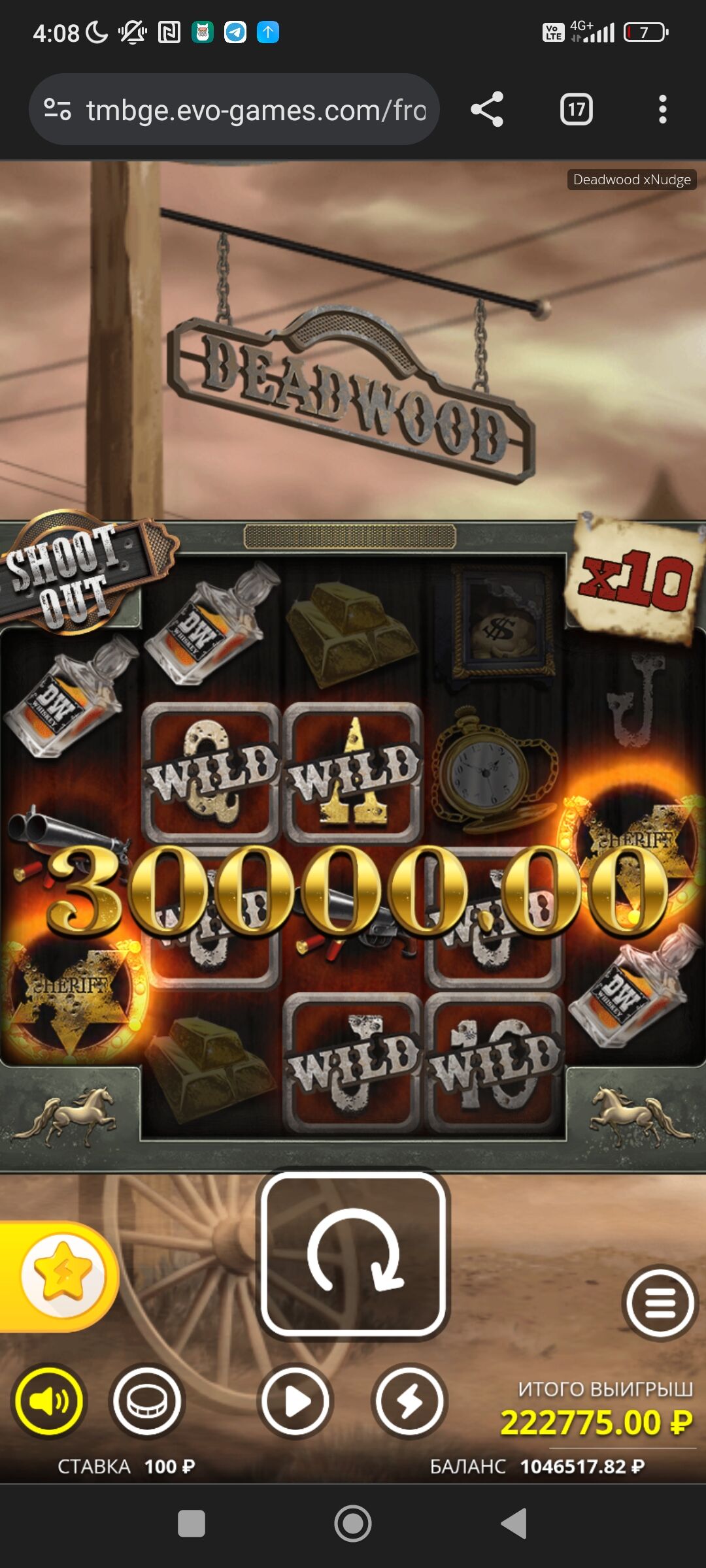 Только что в Старде. Словил максималку х1000, и уж подумал, что на..ёт, но предпоследний спин зарешал! По итогу х12260
