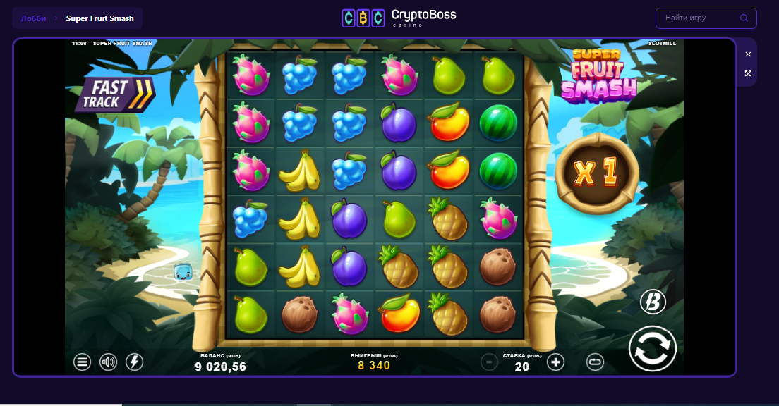 CyptoBoss Slotmill Super Fruit Smash спином без бонуса х 417
