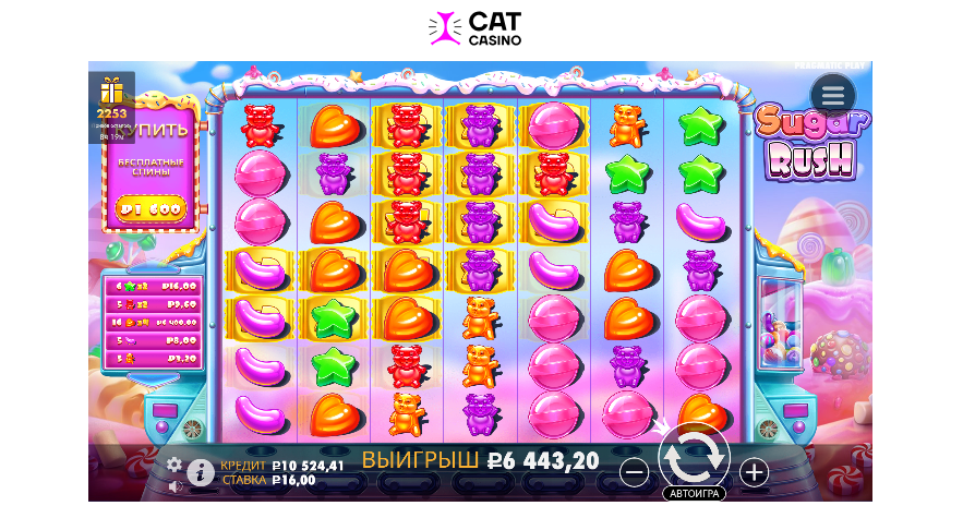 Cat PragmaticPlay Fortune of Giza x395 Sugar Rush просто спином без бонуса х403