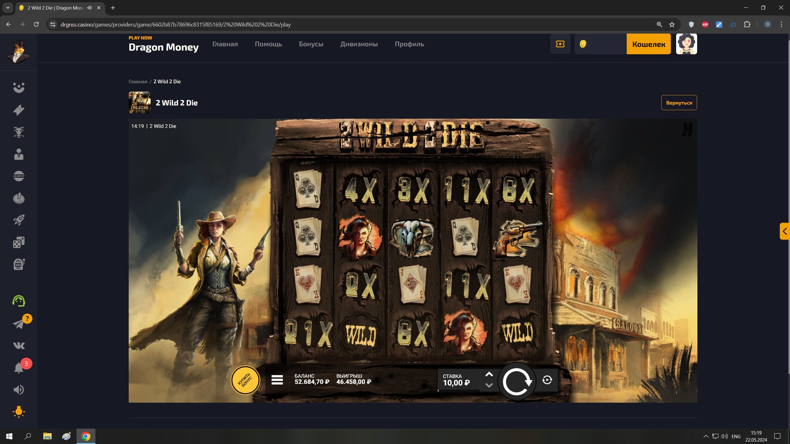 Слот: «Wild bounty Showdown » х121.