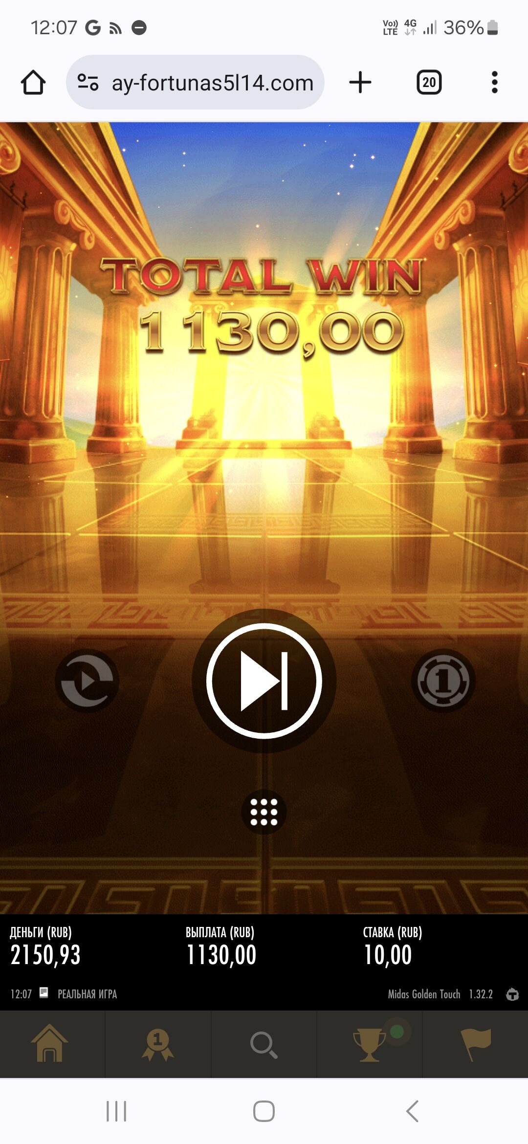 Наконецто поймал! Пох на ставку, я в любом случае рад. Крутил недели 3-4 каждый день и по 15 и по 25 и по 10 и по 2.5 р даже , но поймал по среднечку) когда он 4 поставил на секунду поверил в 5 и он доставил) х1000 (6.250)