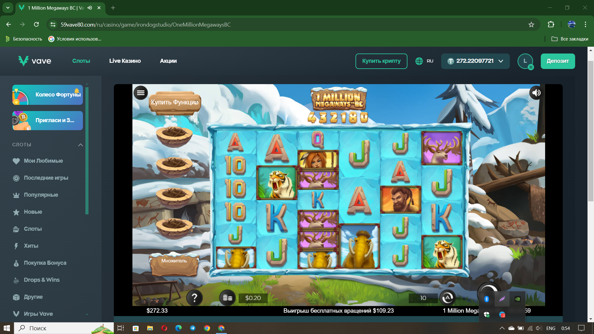 Продолжил в Вай казино. Как же тролит этот ДоА! Опять раскатал губу в надежде на линию с мощным заносом. Но по итогу по лучше чем на прошлом скрине получилось х1084