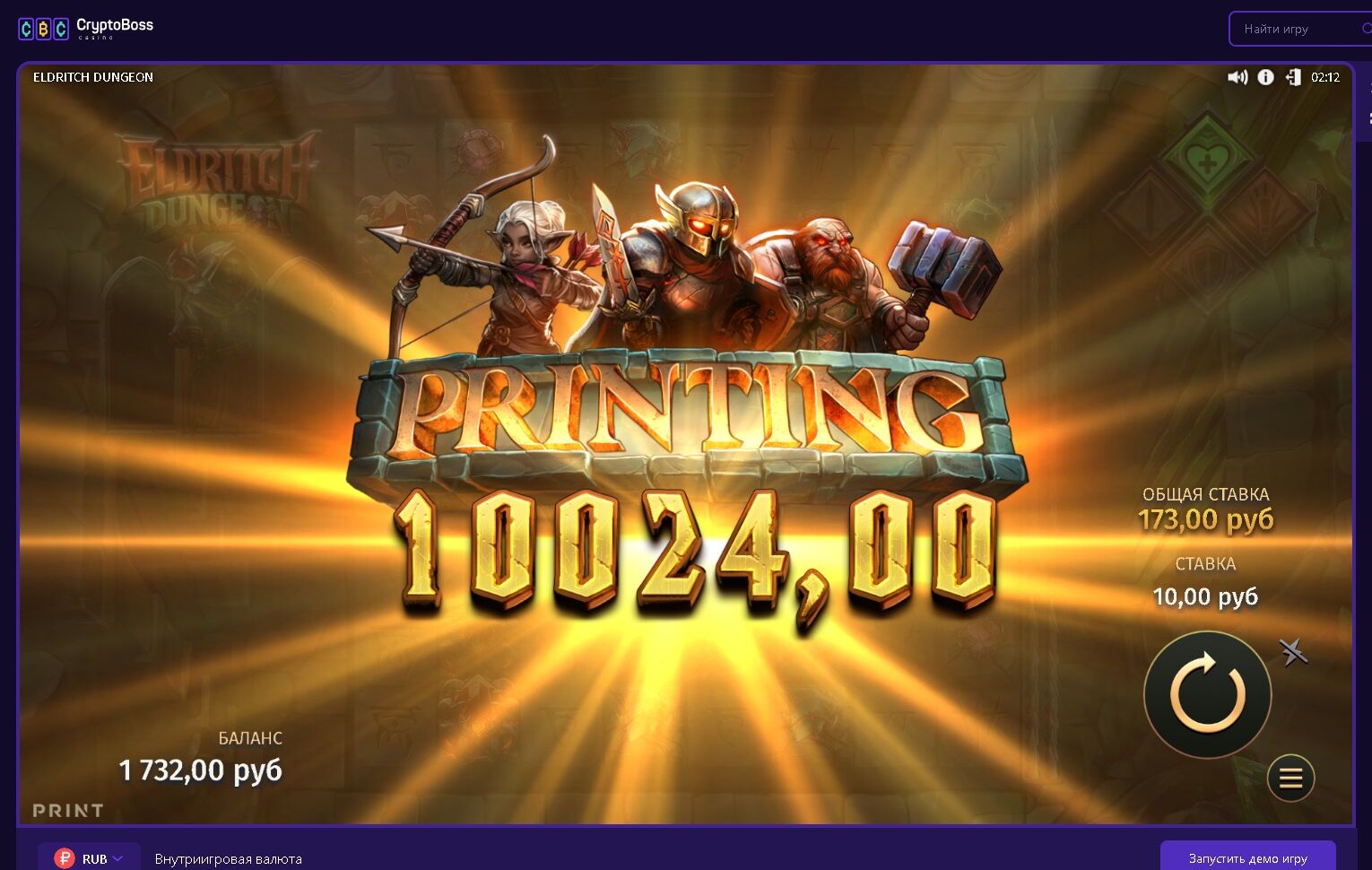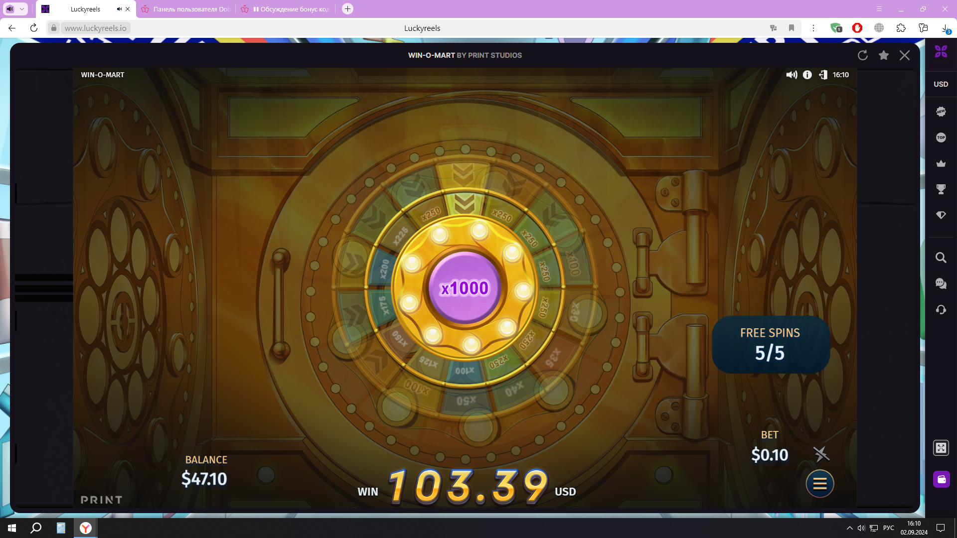 Пара спинов х 1000 в кармане сразу же.