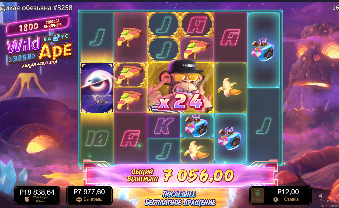 Вавада х650 с копейками, Wild Ape . Покупная вроде, правда потом жрать начал как не в себя что с спина что покупки от 6р до 30р ставка