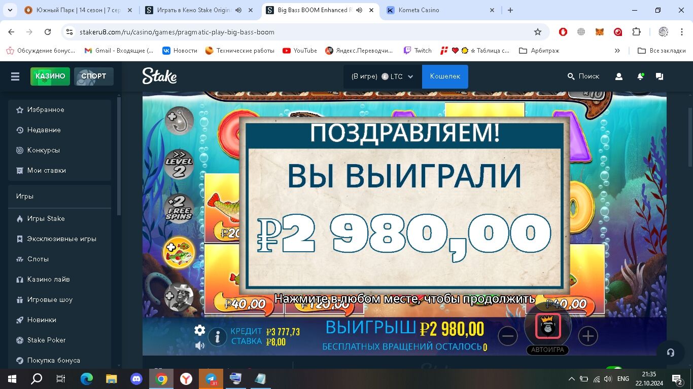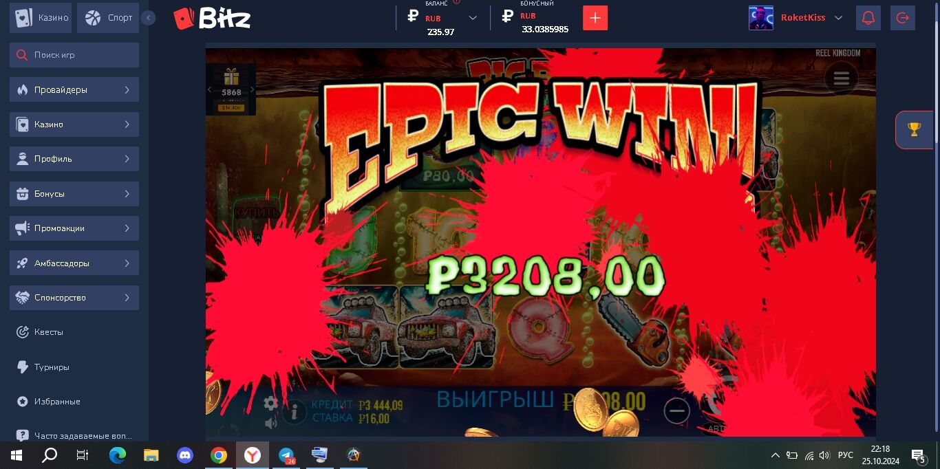 Сегодня в PF. Выдал х250 с первого спина.