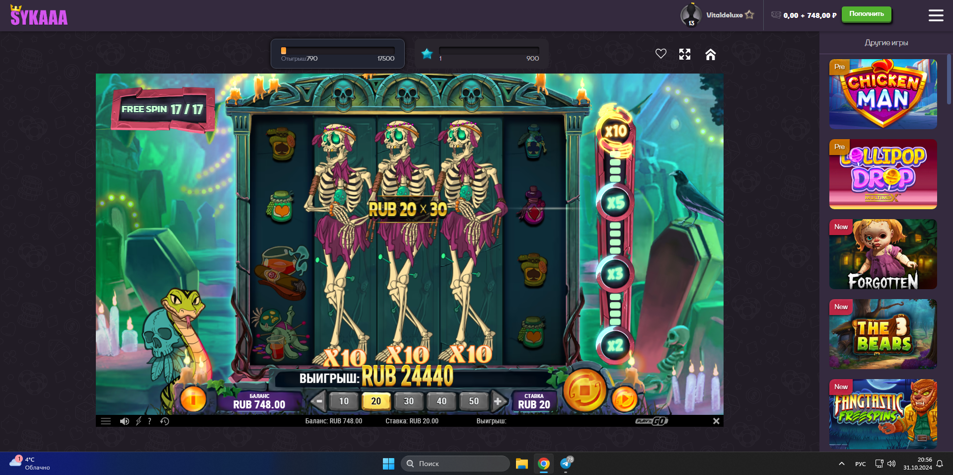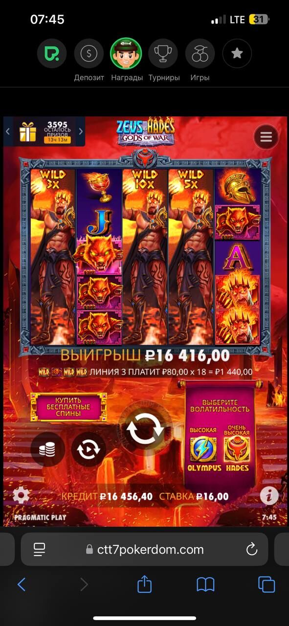 Не знаю выкладывал ли, было недавно относительно.. 1хслотс том оф маднес х220, в разнос пошел — для меня подобные ставки очень крупные, как итог смог остановится лиж на 25к и вывести. ( Деп был 2к всего то)