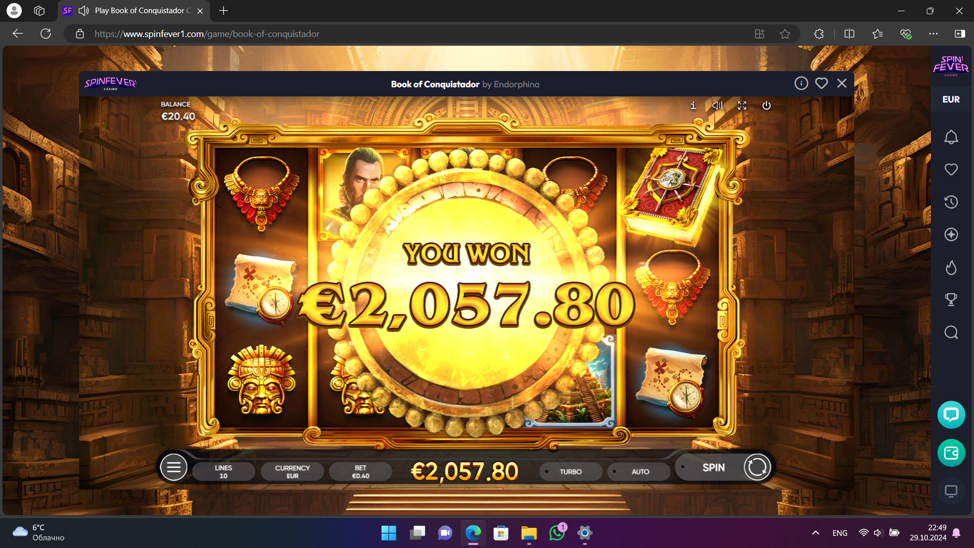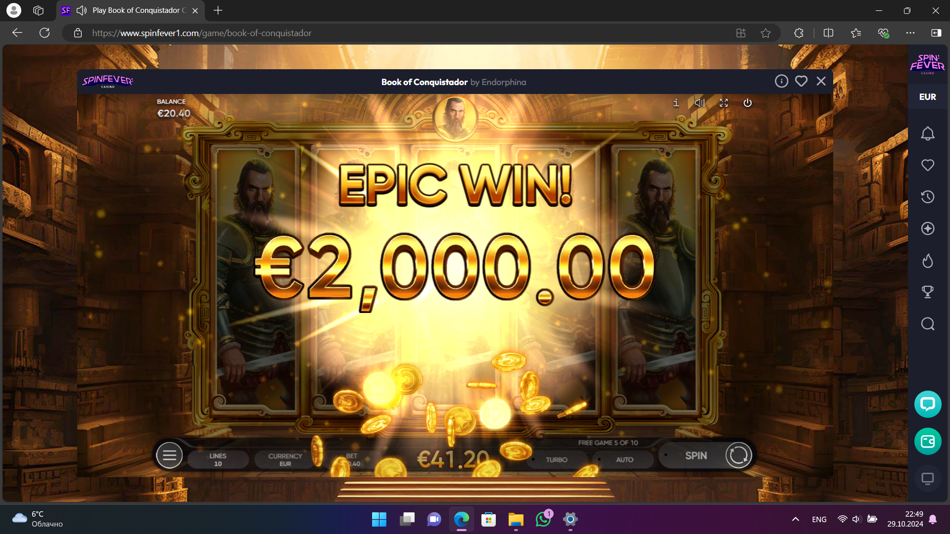 Эндорфина, Спарта х450, мало было 160 спинов в бонусе.