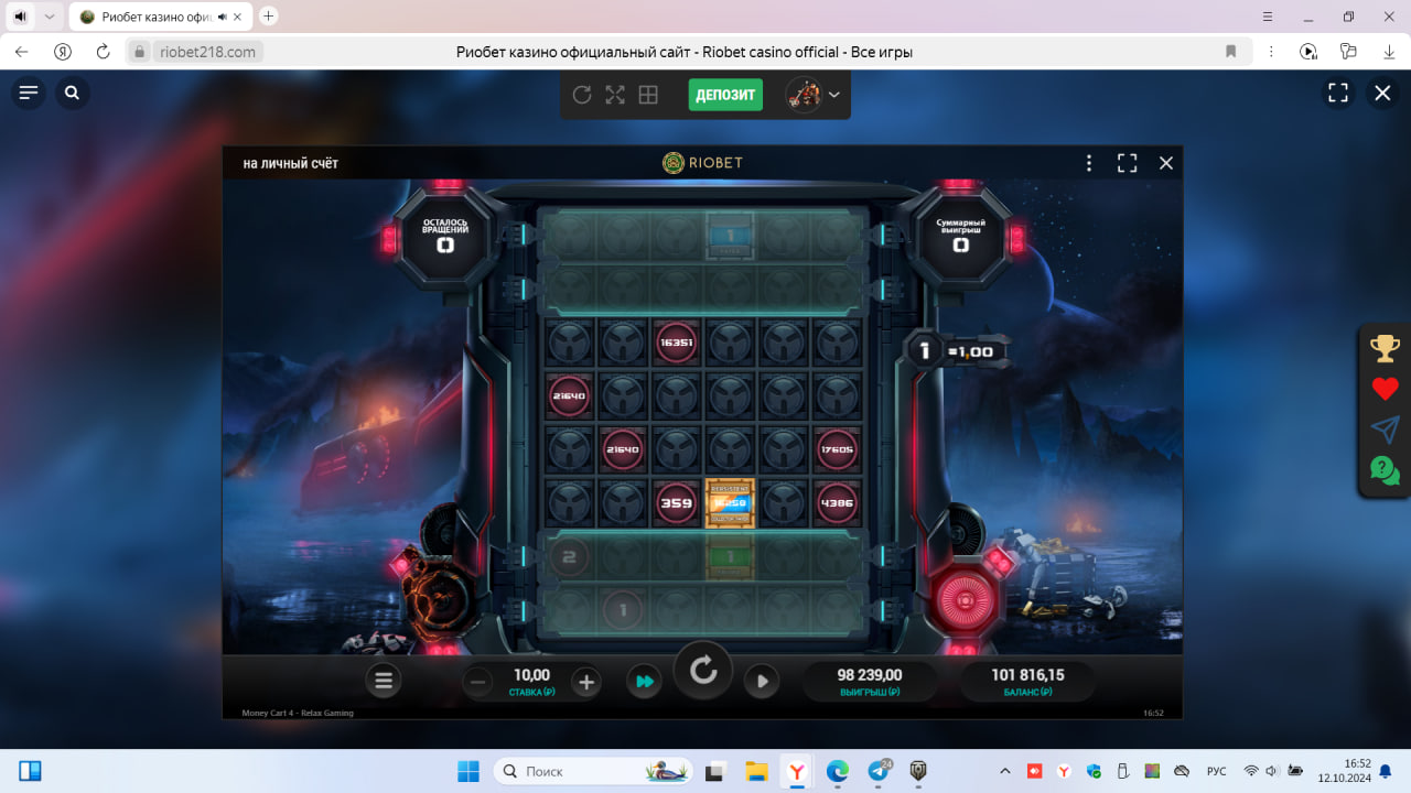 Riobet проваидер Relax Gaming слот Money Cart 4 умножение х9823