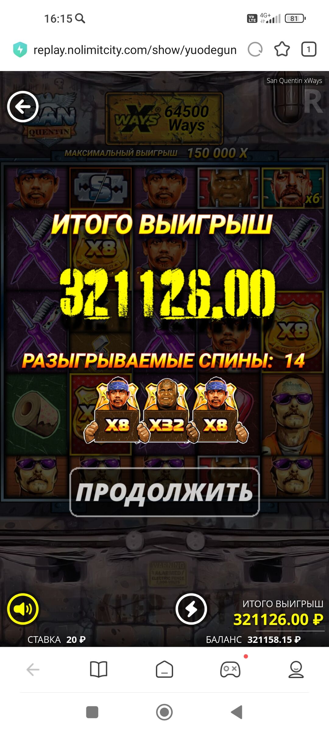 Мой максимальный выигрыш в ноулимите. Это было вулкан венас![]()
