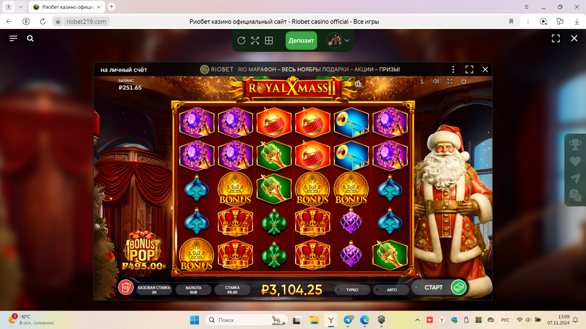 Х1500, с игры поймал бонус, было только три спина с 4мя палками. Слоттивей.