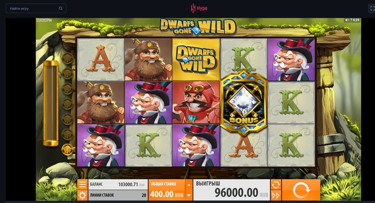 Hype казино, х240, слот Dwarfs Gone Wild от Quickspin.