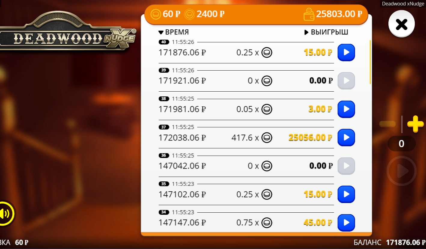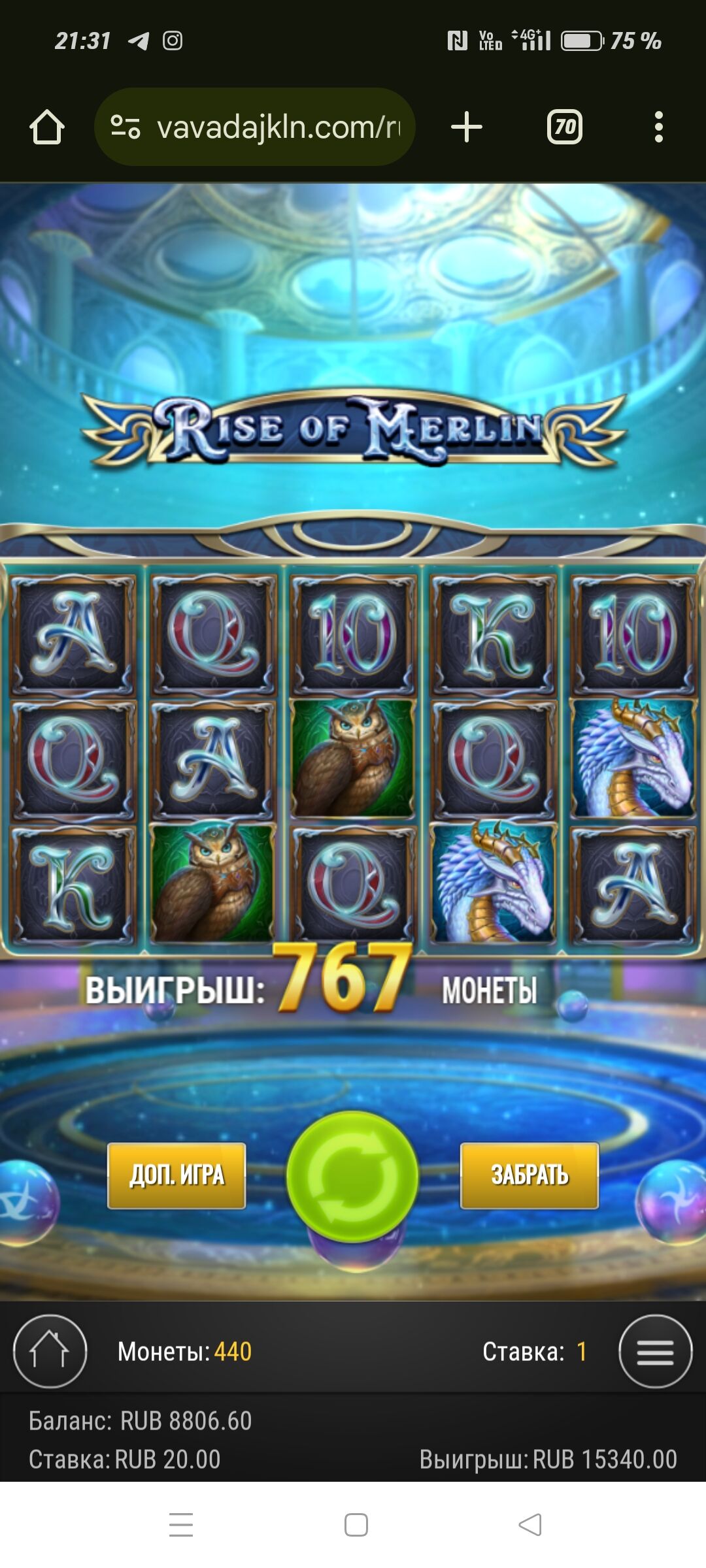 х774 Fairspin, Эндорфина пыталась ставить какие-то бонуски,додепал еще 10$,зашёл в этот слот,по 1 линии дало 70$, потом по 10 линий поставило бонуску
