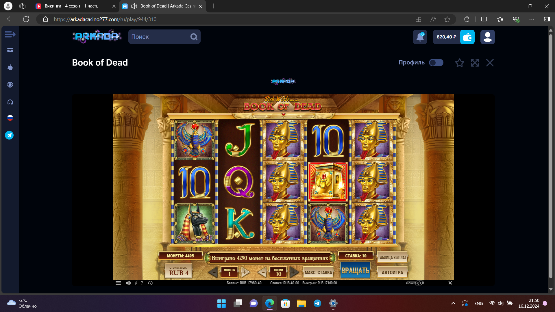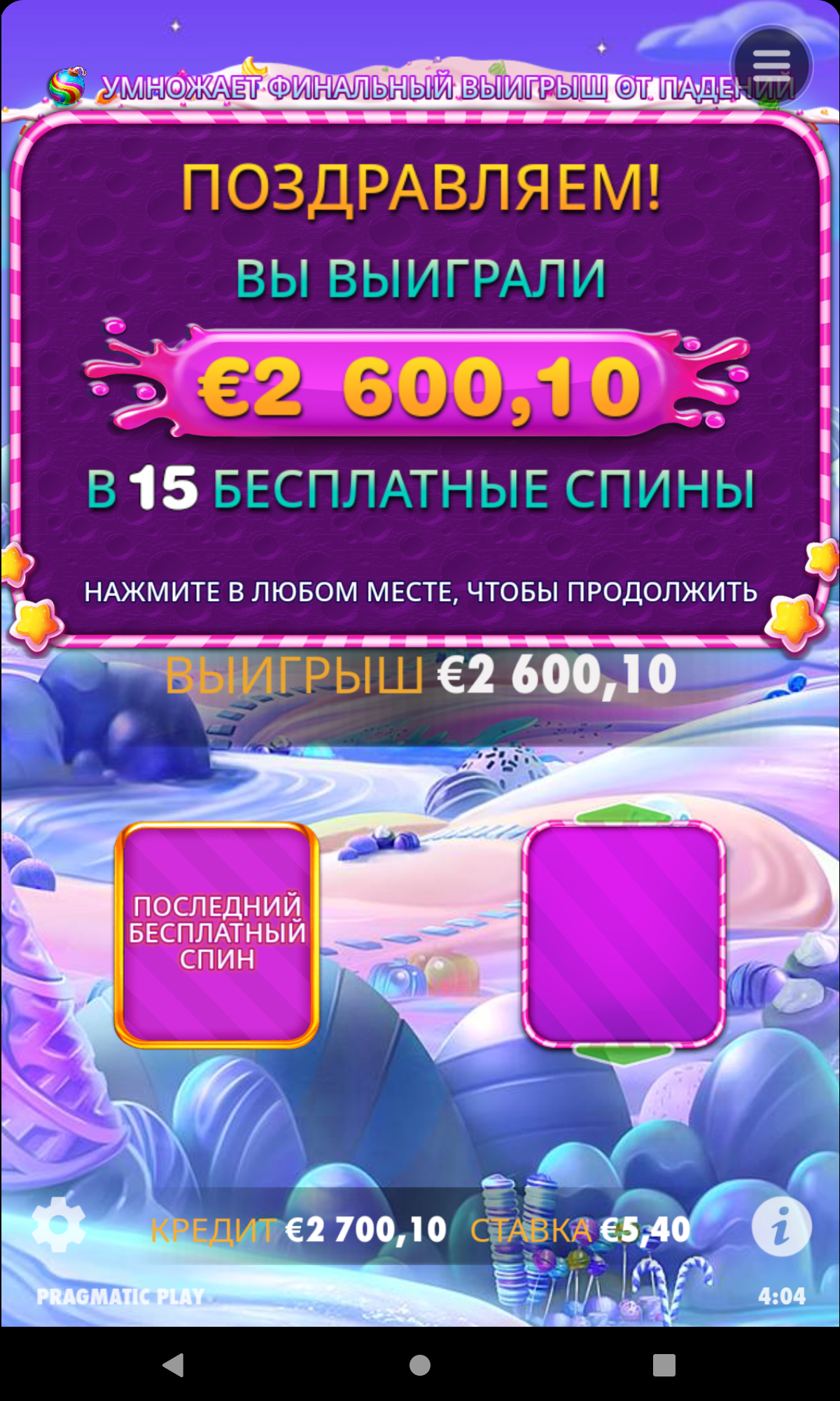 Слоттика х1220 и х2700 играл по ставке 10р. Покупал фичу за 500р спин