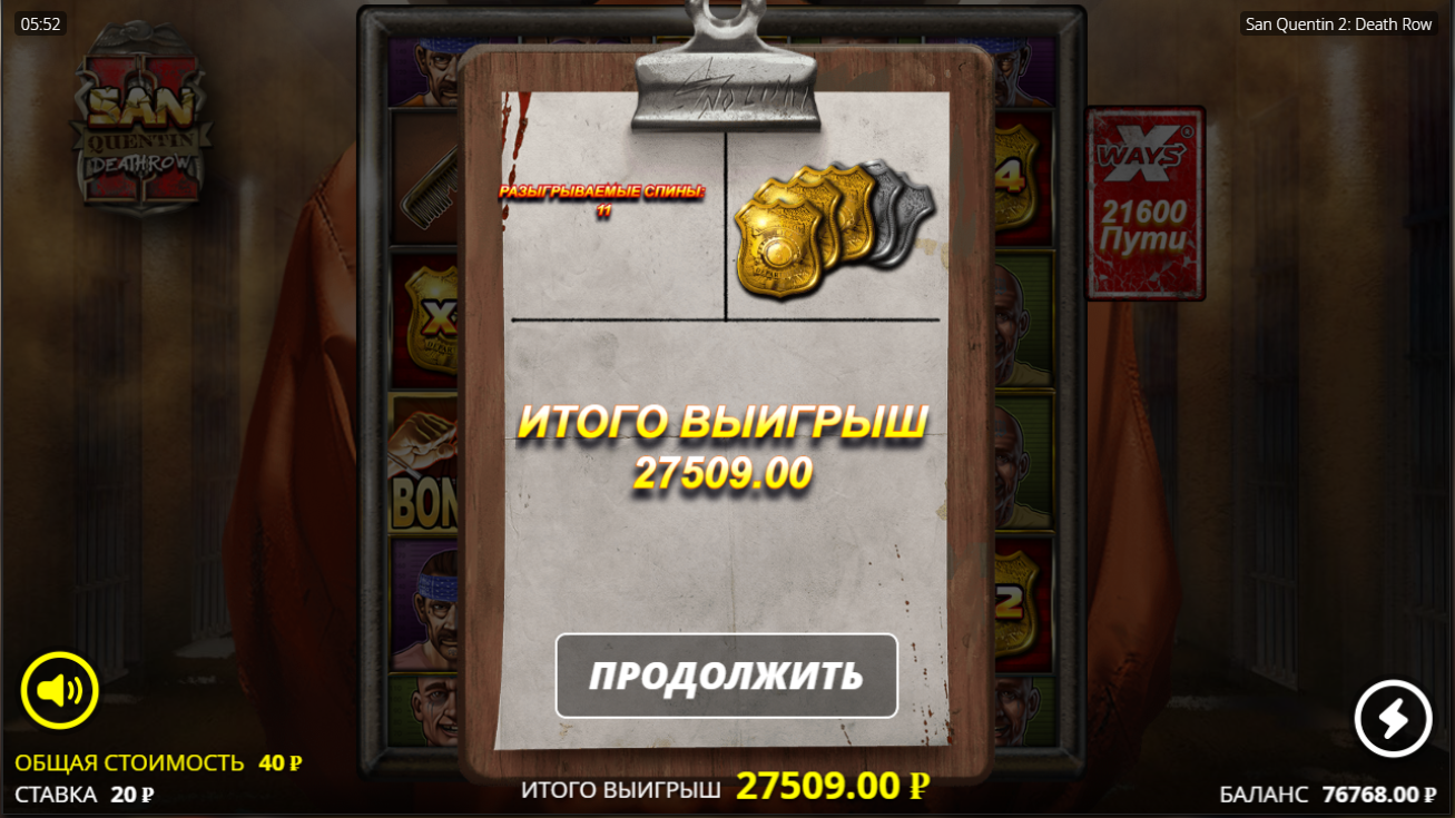 San Quentin 2: Death Row x1375 (выпала в спине обычная бонуска, пробил до средней и в спинах разыгралась до топовой)