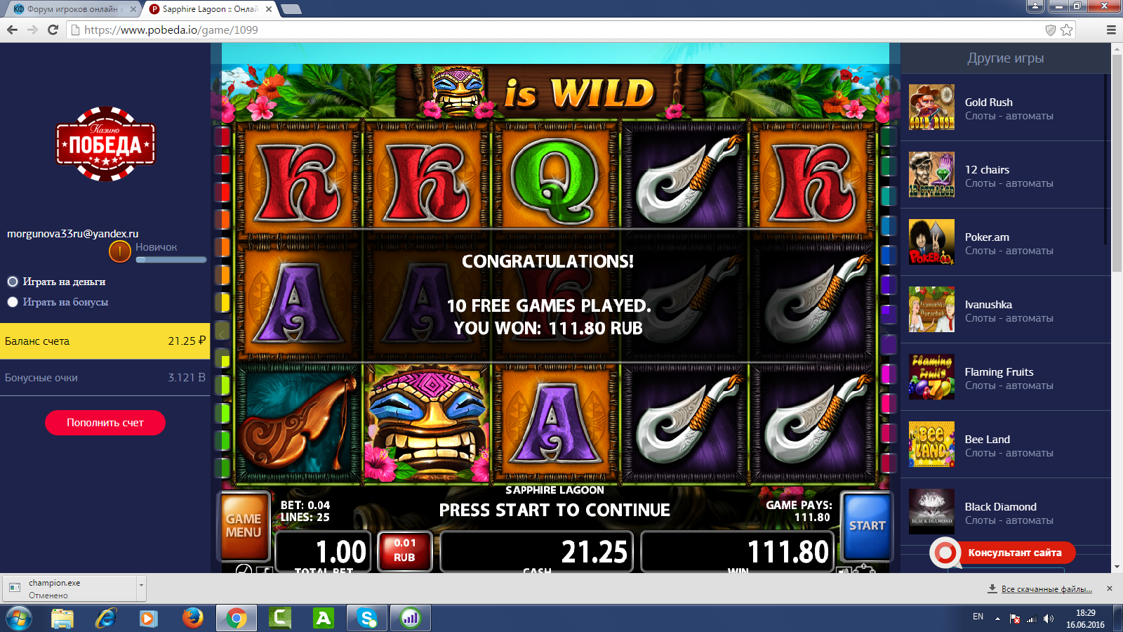 Virtual City Casino, отбивал бонус.
