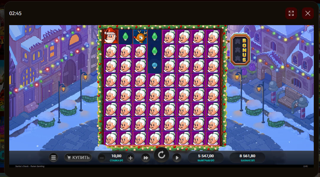 х554 (не бонуска, функция Secret Santa Re-Spin — поставил пару вайлдов и потом понеслось расширение подарков, а в подарках открыл бабушку, жаль не Санту)