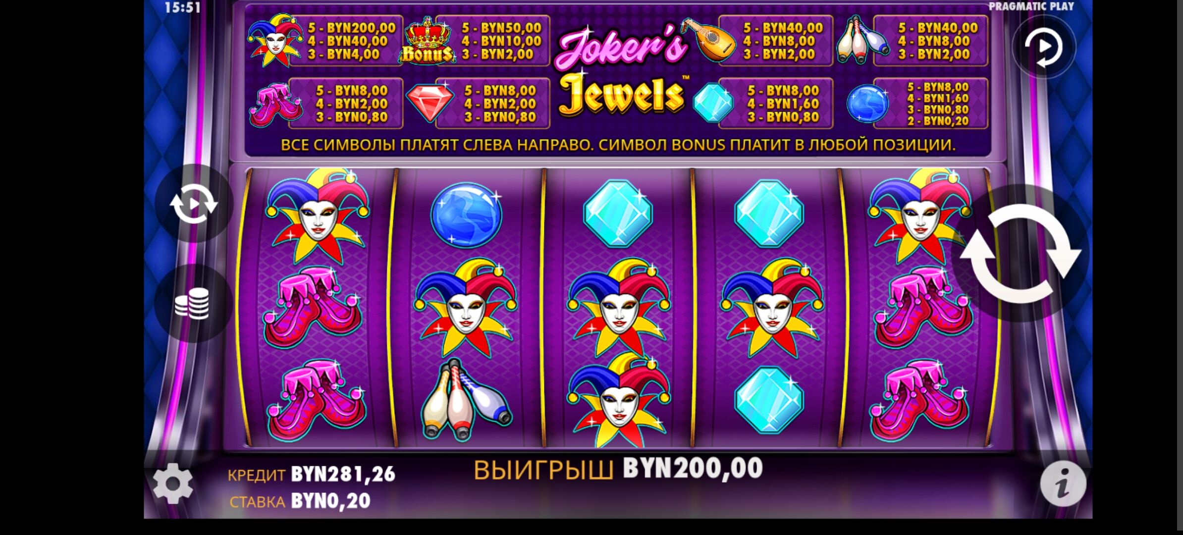 Казино Betera. Играю в белорусских рублях. По мин ставке катал в слот Joker jewels. Играл слот бодренько и пульнул х1000 за пять джокеров.