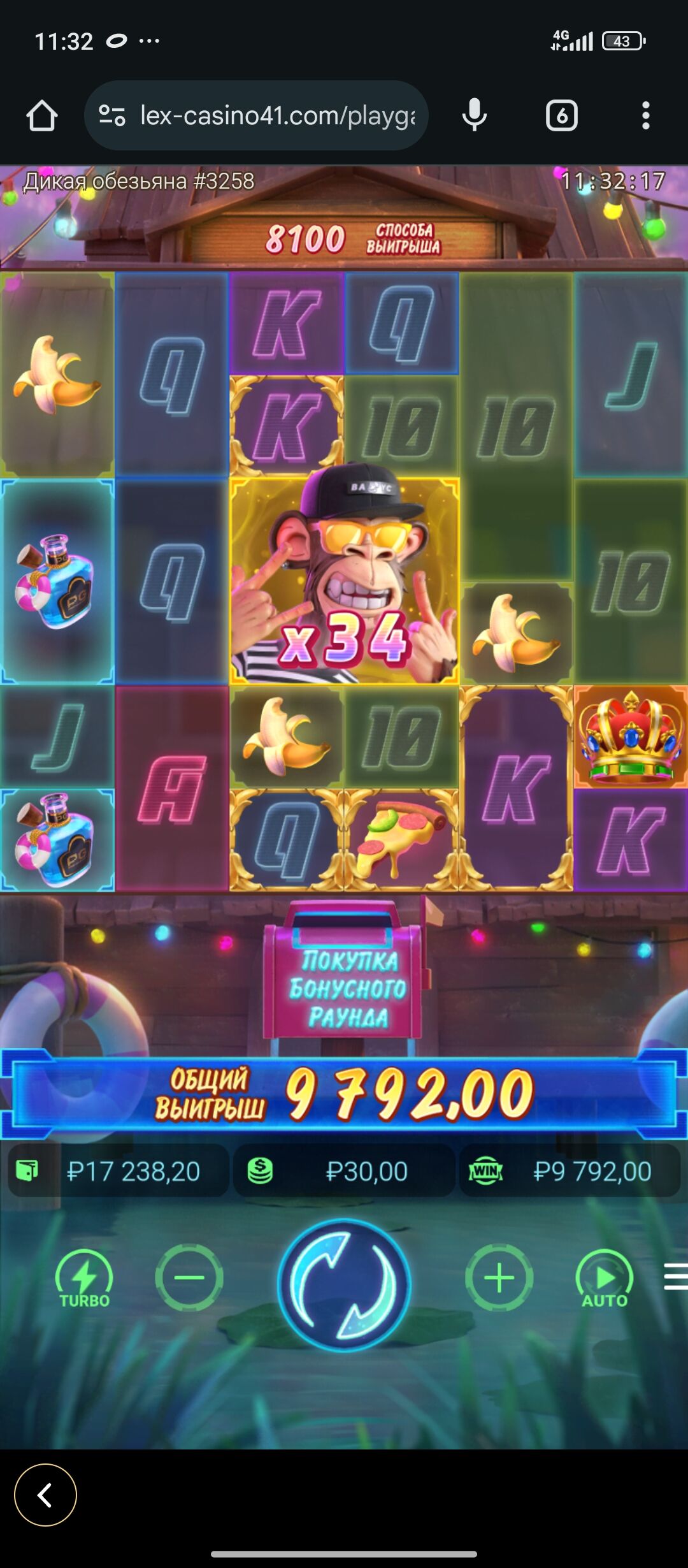 Казино Lex ставка 30р. PG soft wild ape Х326
