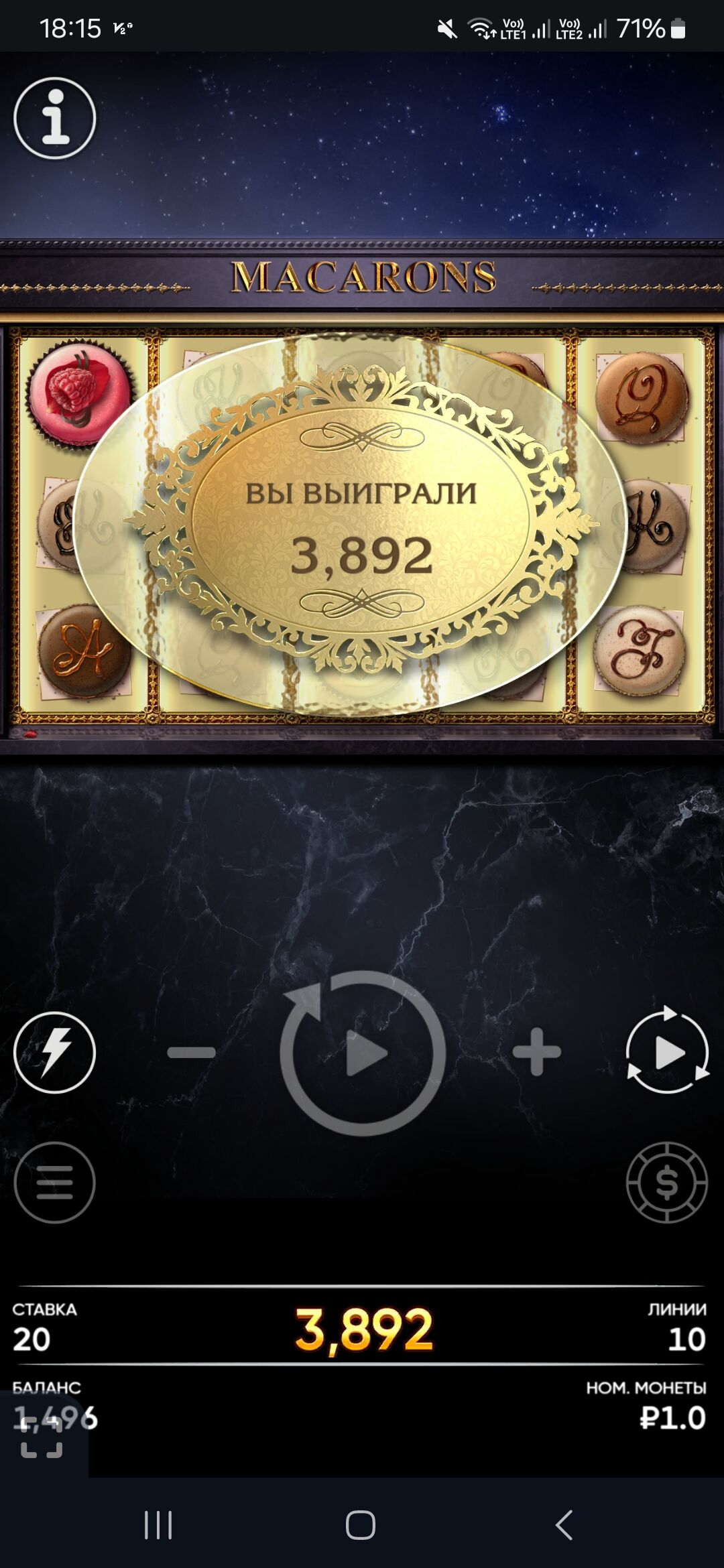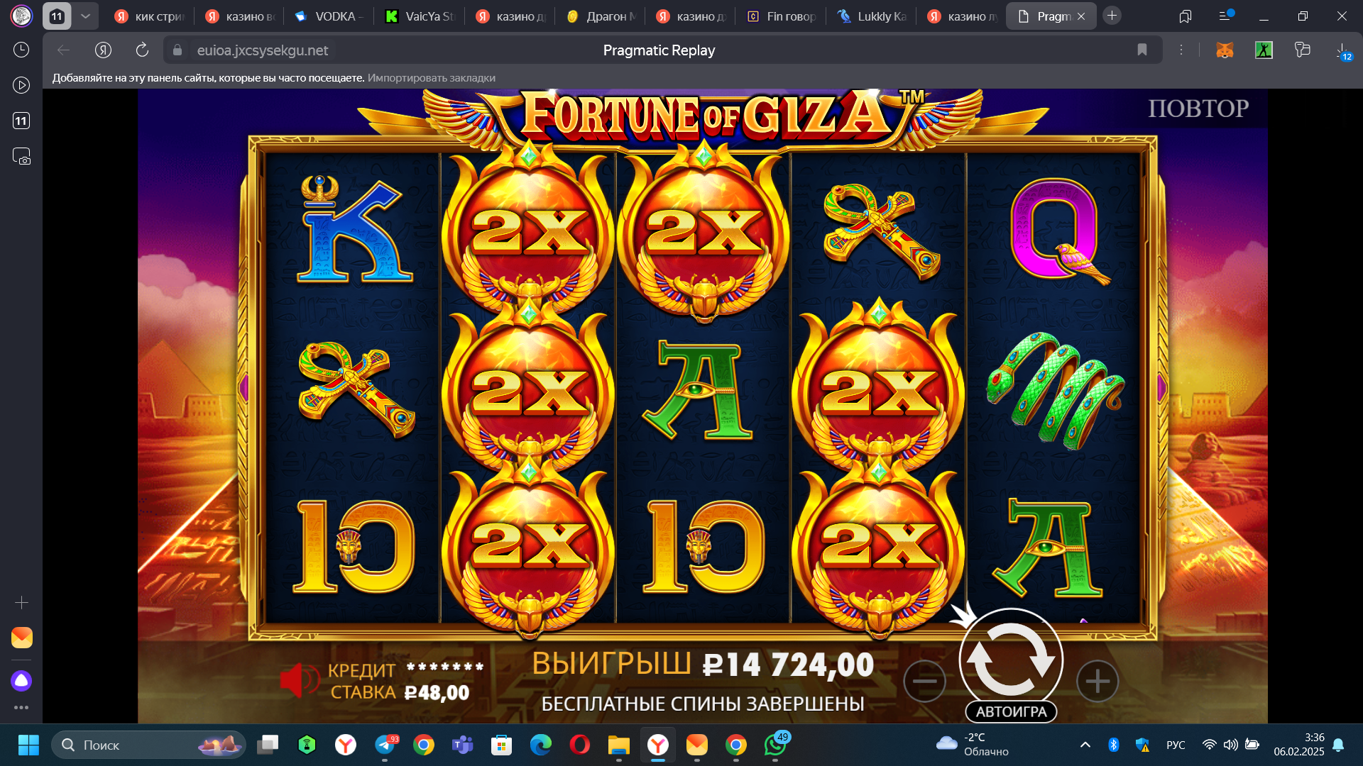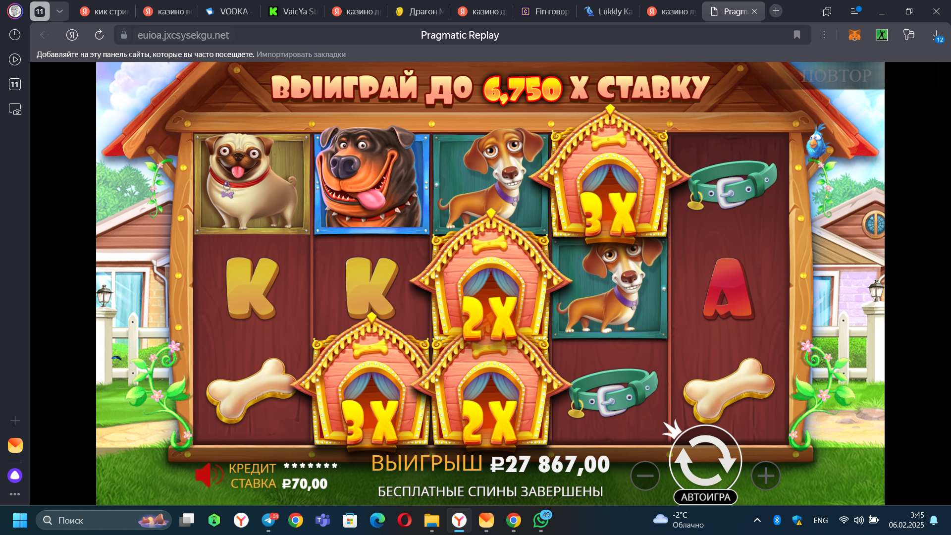 Извините, сам не люблю такие скрины, где только результат. Выпало 2 кота в последнем 5 ом барабане.