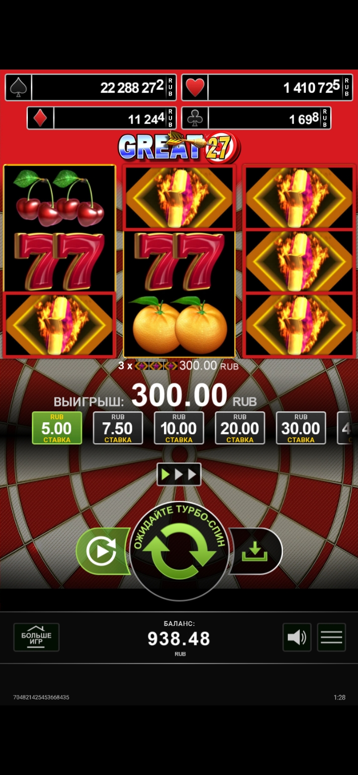 Немножечко в чемпионе семёрочек! Не очень доволен таким количеством, ну ты так! Просто когда столько ловишь и ставка не большая, уже точно не поймаешь ещё, ближайшее время! Т е шанс на ноль:((
