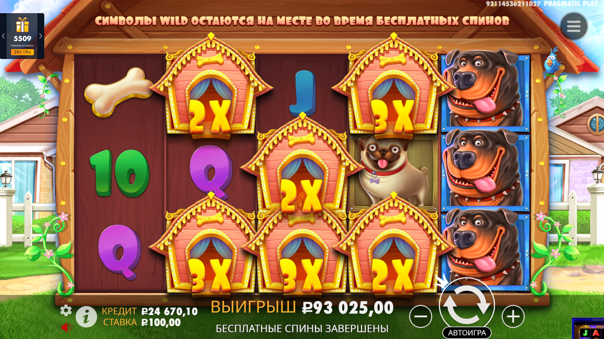 И опять мои любимые собаки. за неделю это уже третий занос! Казино DragonMoney, слот Dog house x930, ставка 100. Кстати, ни разу не ловил больше х1000 с копейками, хотя заявлено более х6000. Всем заносов и вовремя жмите кнопку вывода!
