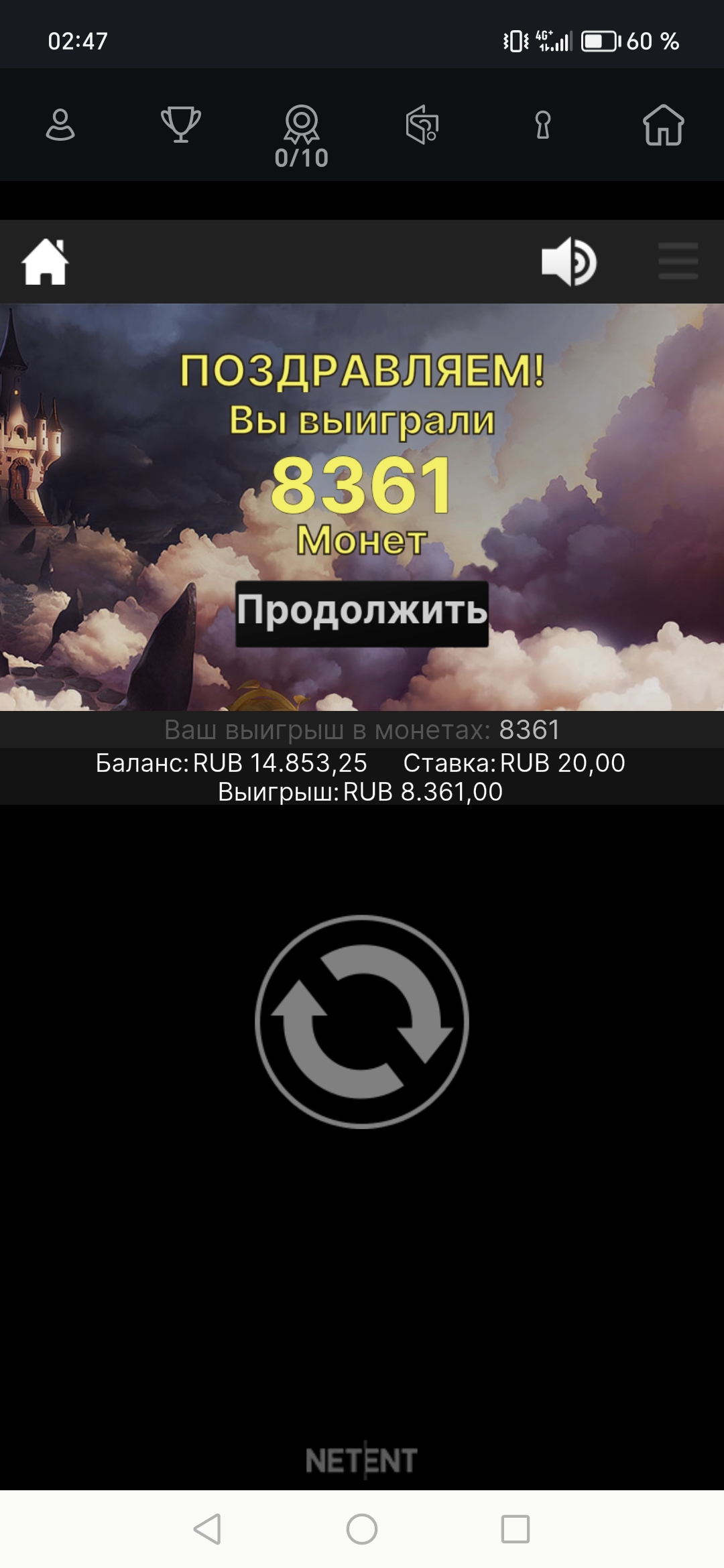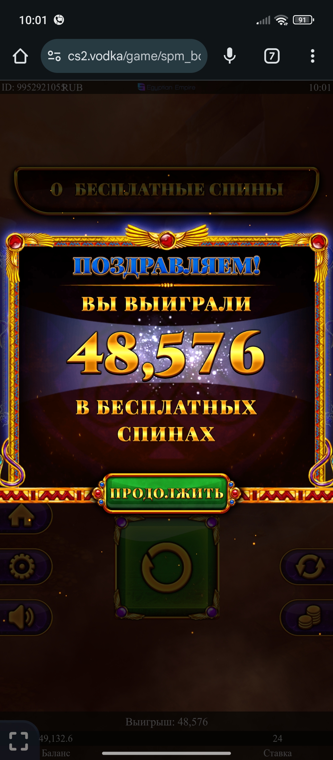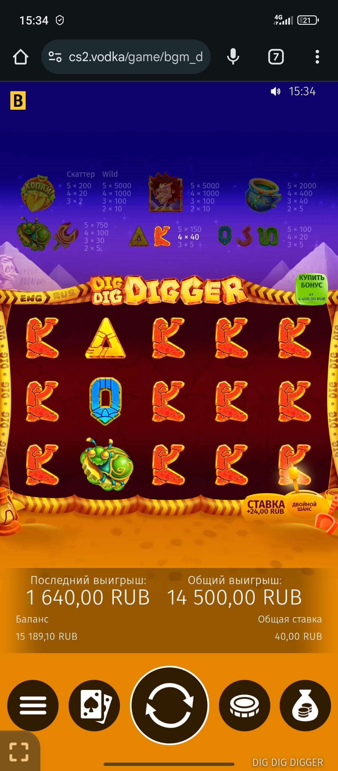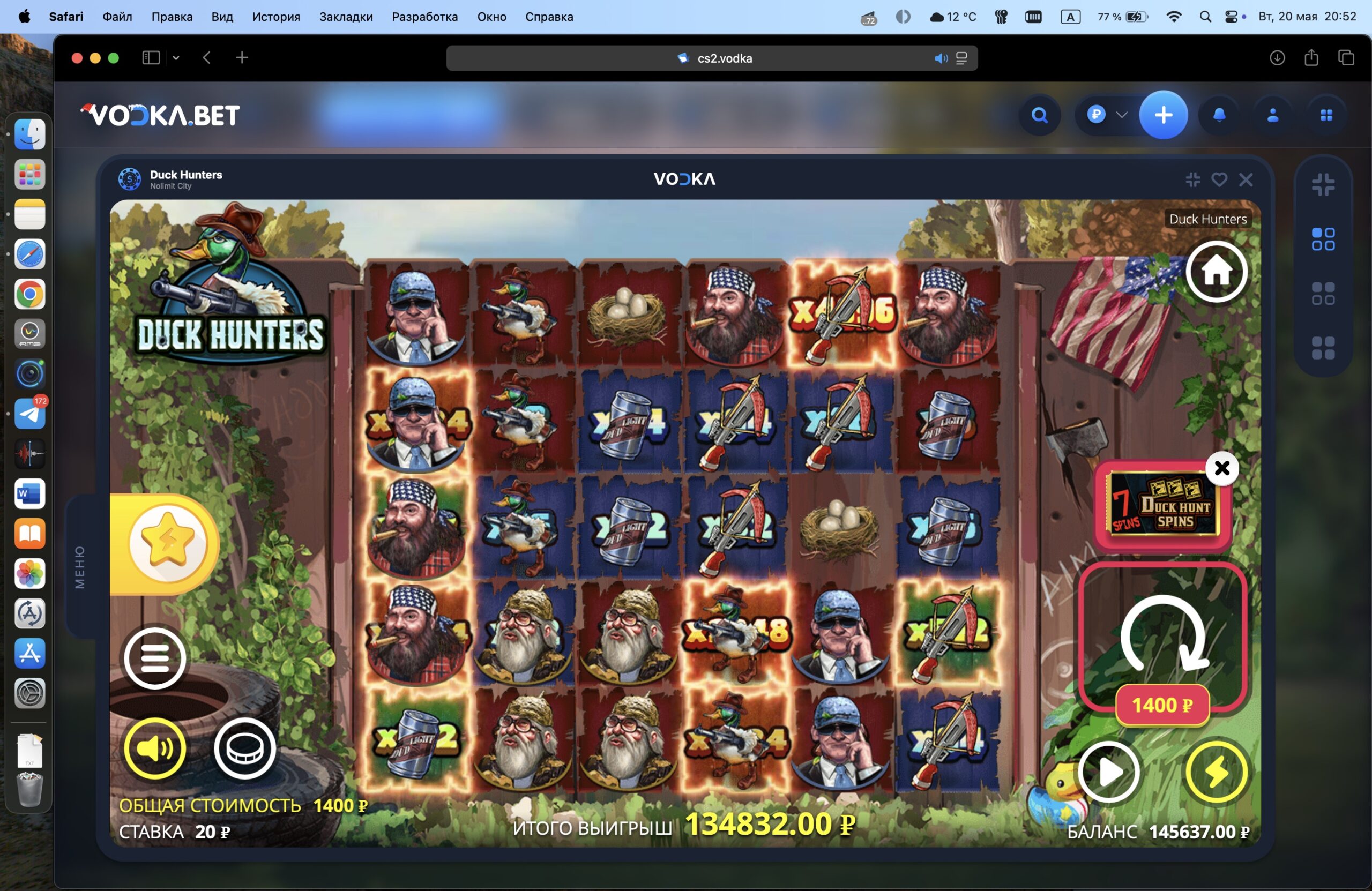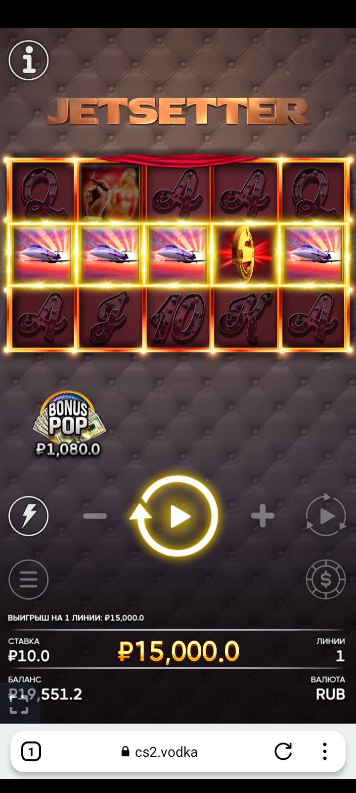 Водочка, покупная бонуска за 1400р ставка 20р на спин в мой любимый нолимитсити