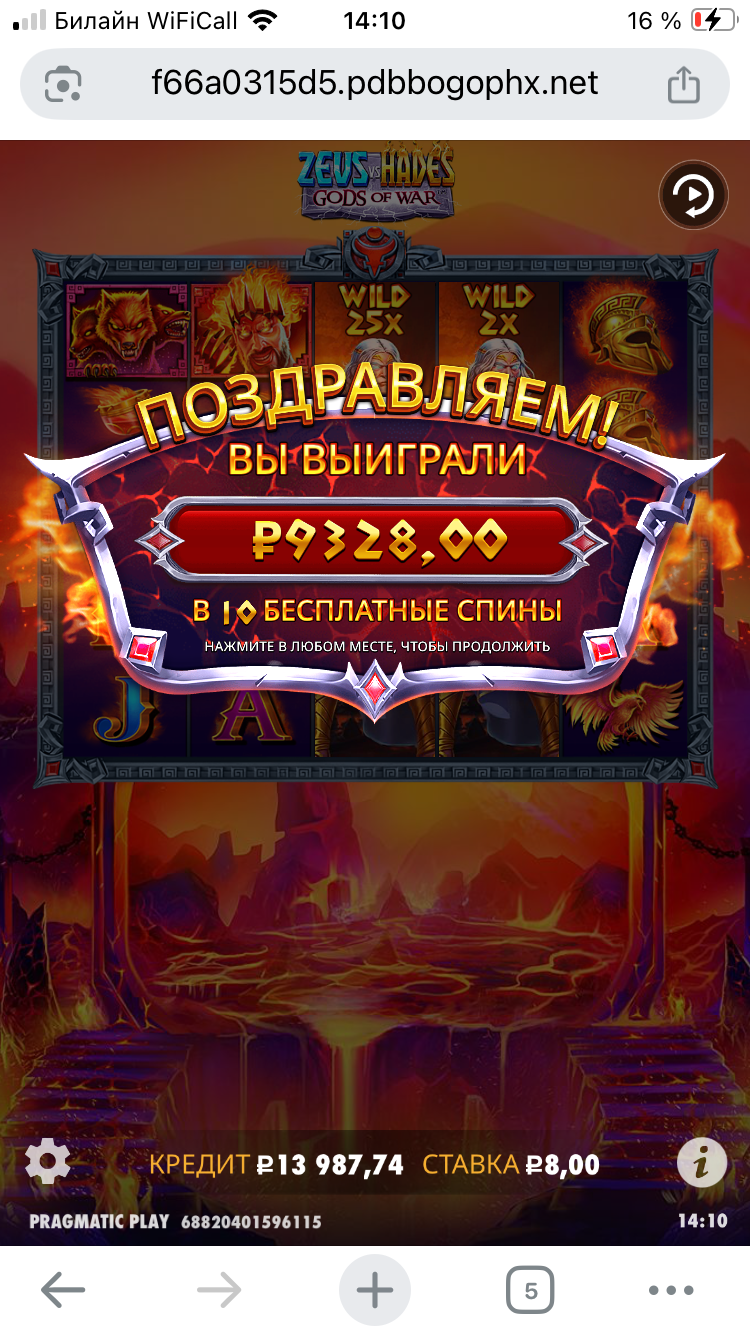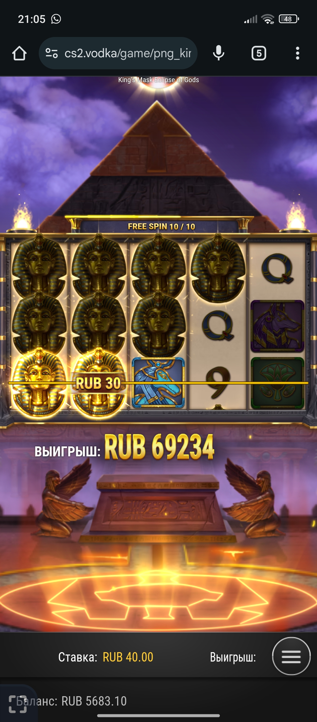 Сегодня в Вай казино. Х5110. Упало х250 на третьем спине, с одним ретригером.