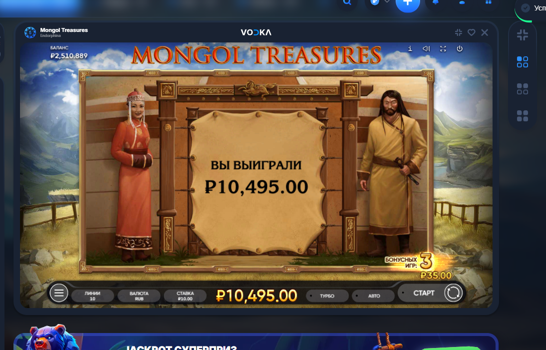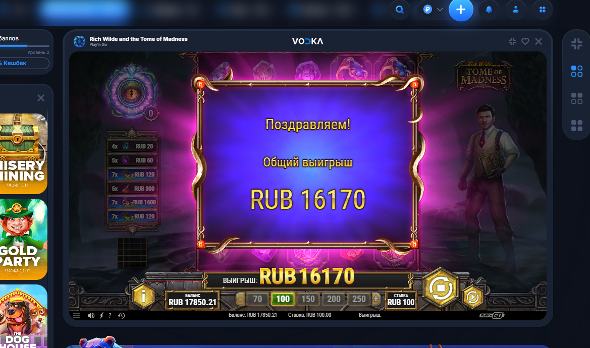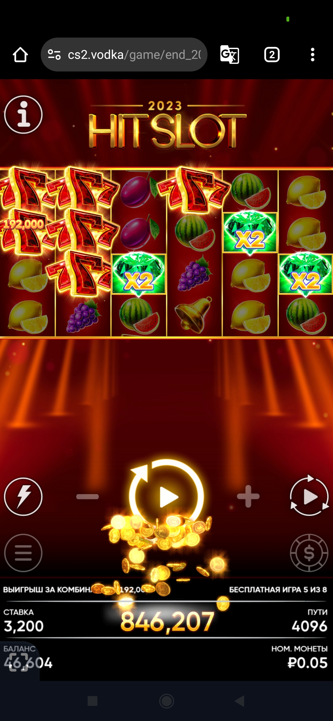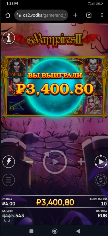 Vodka casino. Слот Vampires 2. Ставка 4 рубля. Х850. Почти сразу упал бонус, сам его стопнкл на последнем барабане.![]()
