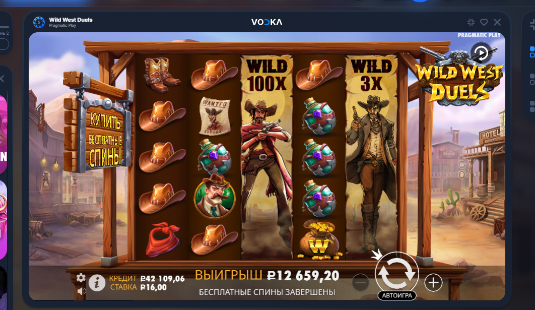 Ну а это самый вкусный выигрыш за вчера — зашел буквально на 100 спинов по чуйке и поймал дуэльки.. с первого же спина вайлд на 1-2-3 барбан и бутылки на 4-5 и там умножение х9 х9 х9 что смешно вышло)