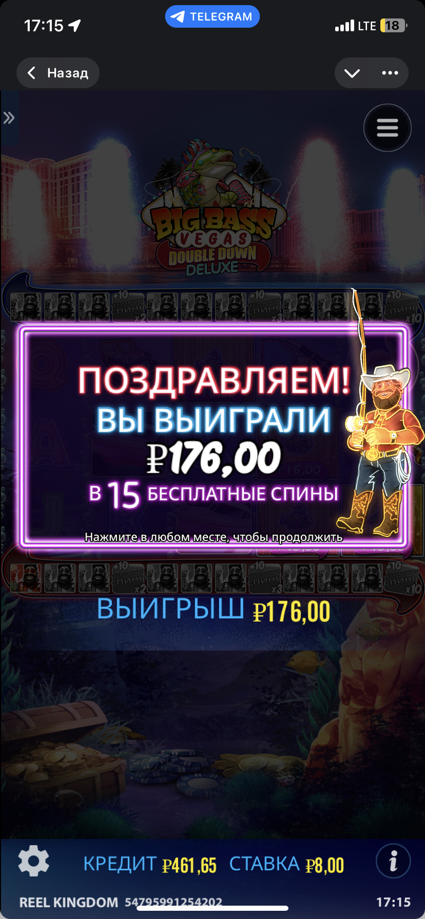 Тоже вкусный занос в Big Bass Vegas Double Down Deluxe