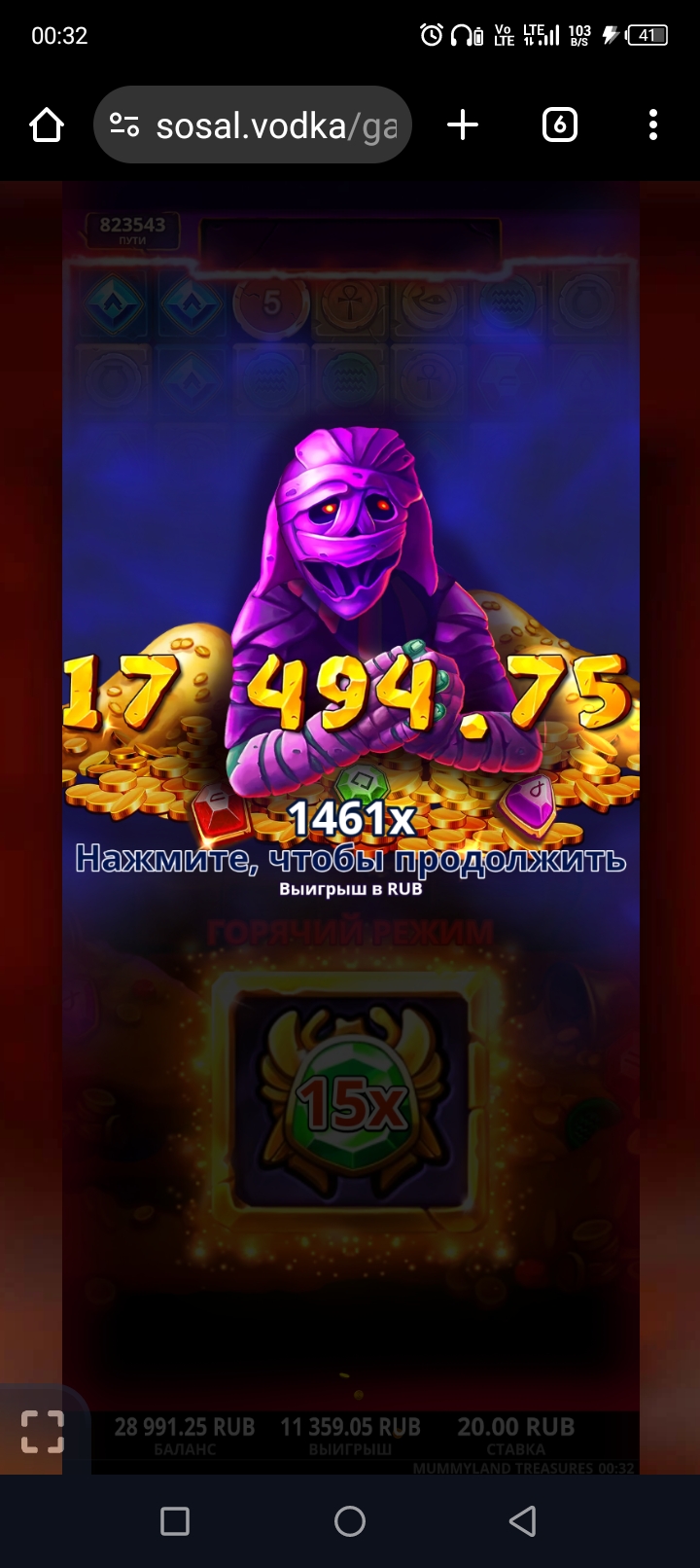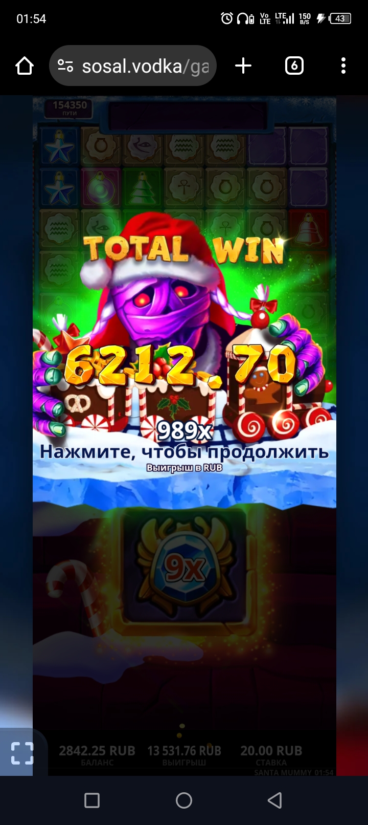 Слот мумия зимния , бонус покупной рандомный выпал обычный бонус, ставка 20 рублей, икс 989,на 9 спине монеты с играли