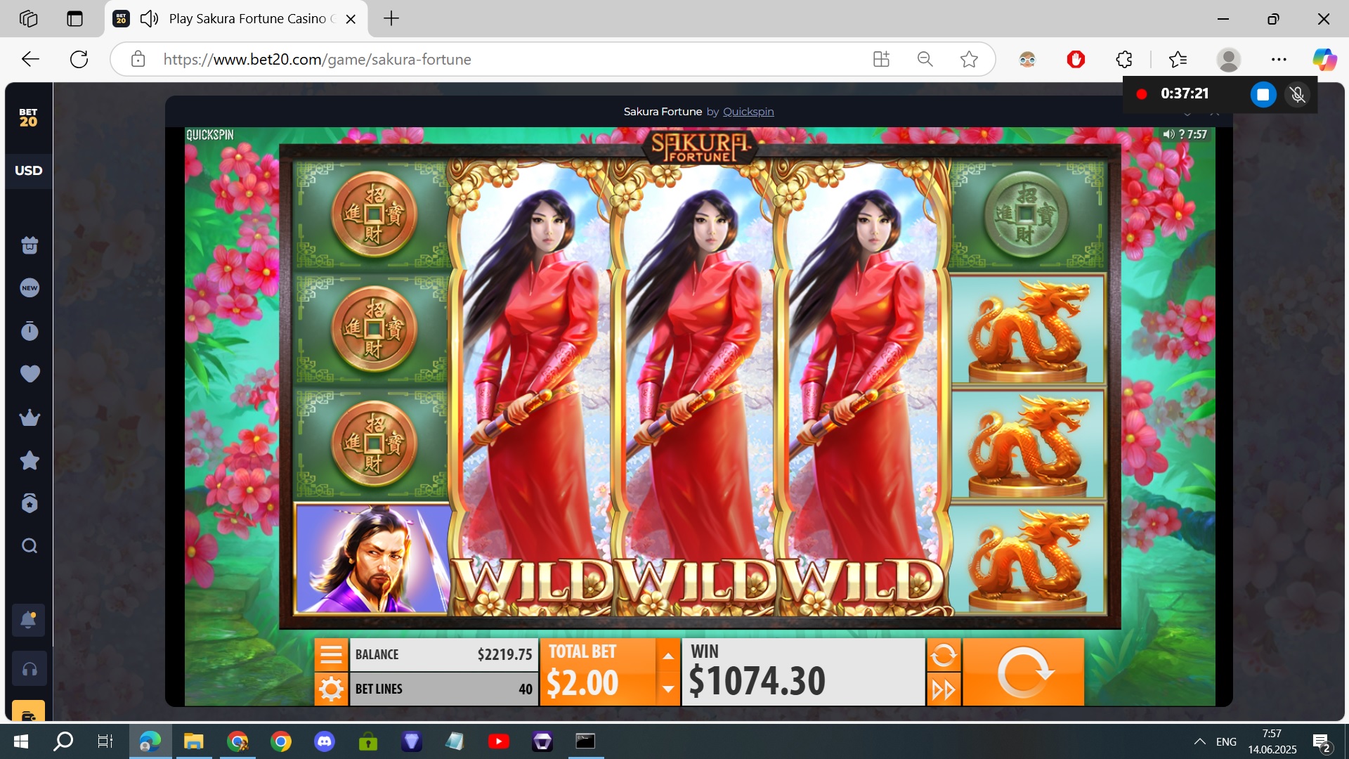 Я таких приколов в жизни от сакуры не видел, с хода три сакуры, максимальная возможная комбинация и хиленькая бонуска, но по ставке 2$, x537