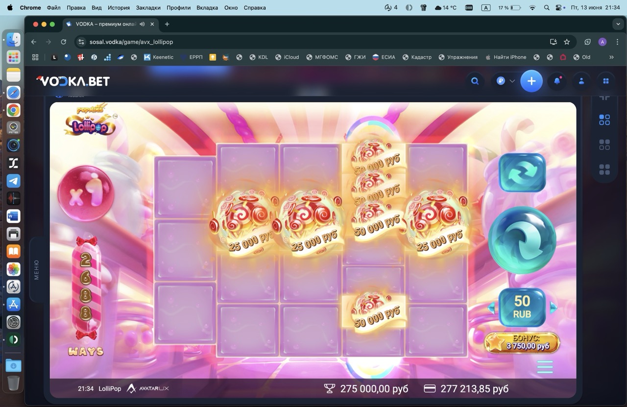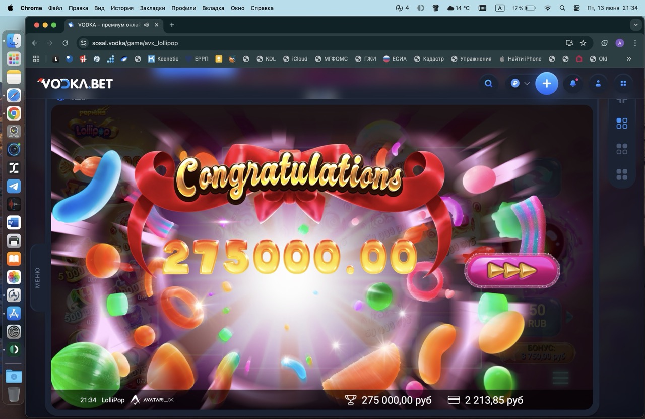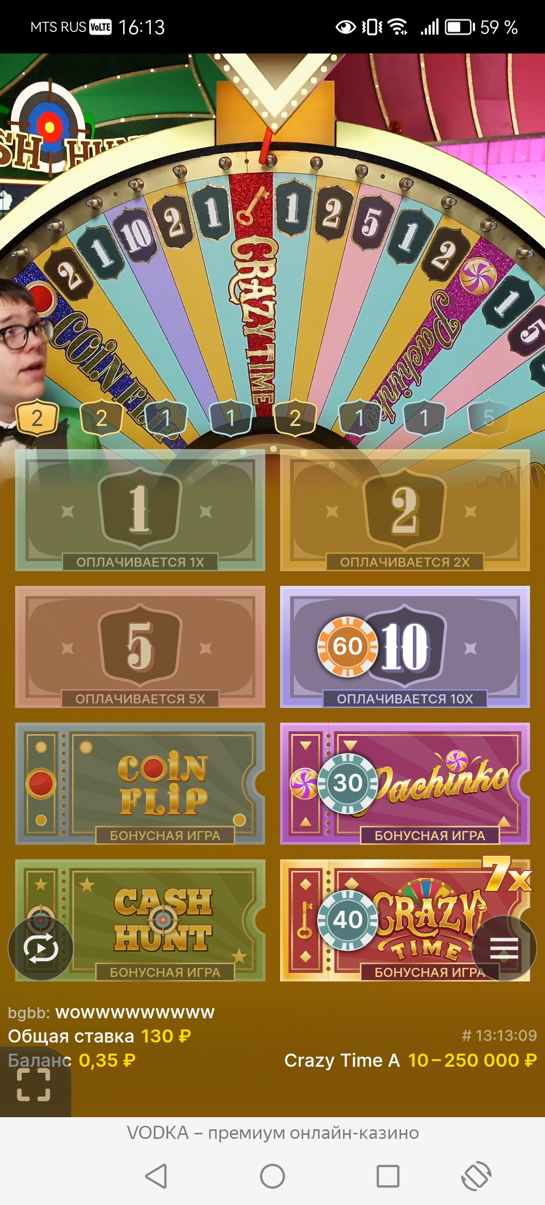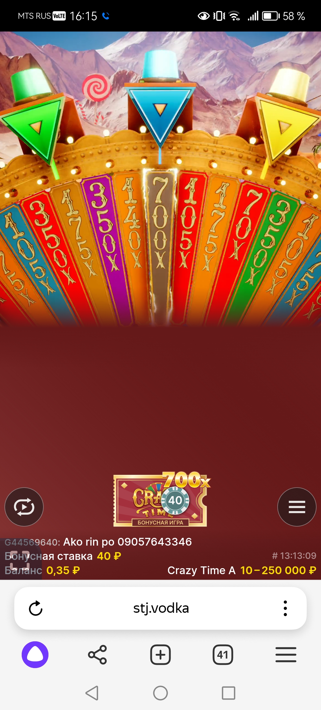 водка, оставалось 130р зашел поставил, и сразу же крейзи выпало под х7. Редкость для меня такие выигрыши в крейзи, а тут приятность такая
