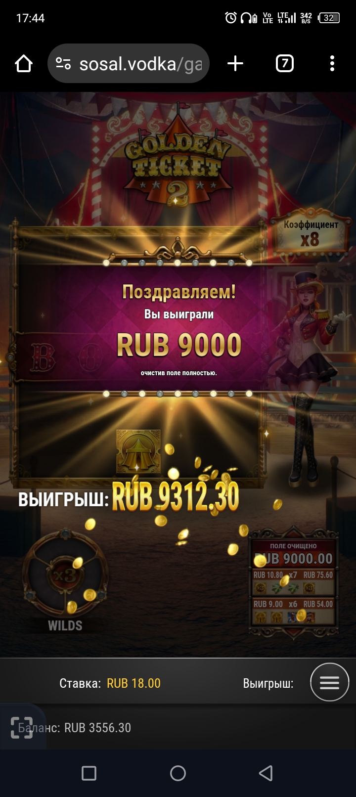 Казино водка слот Голден тикет 2 ставка 18 рублей зачистка поля + бонус 533 икса