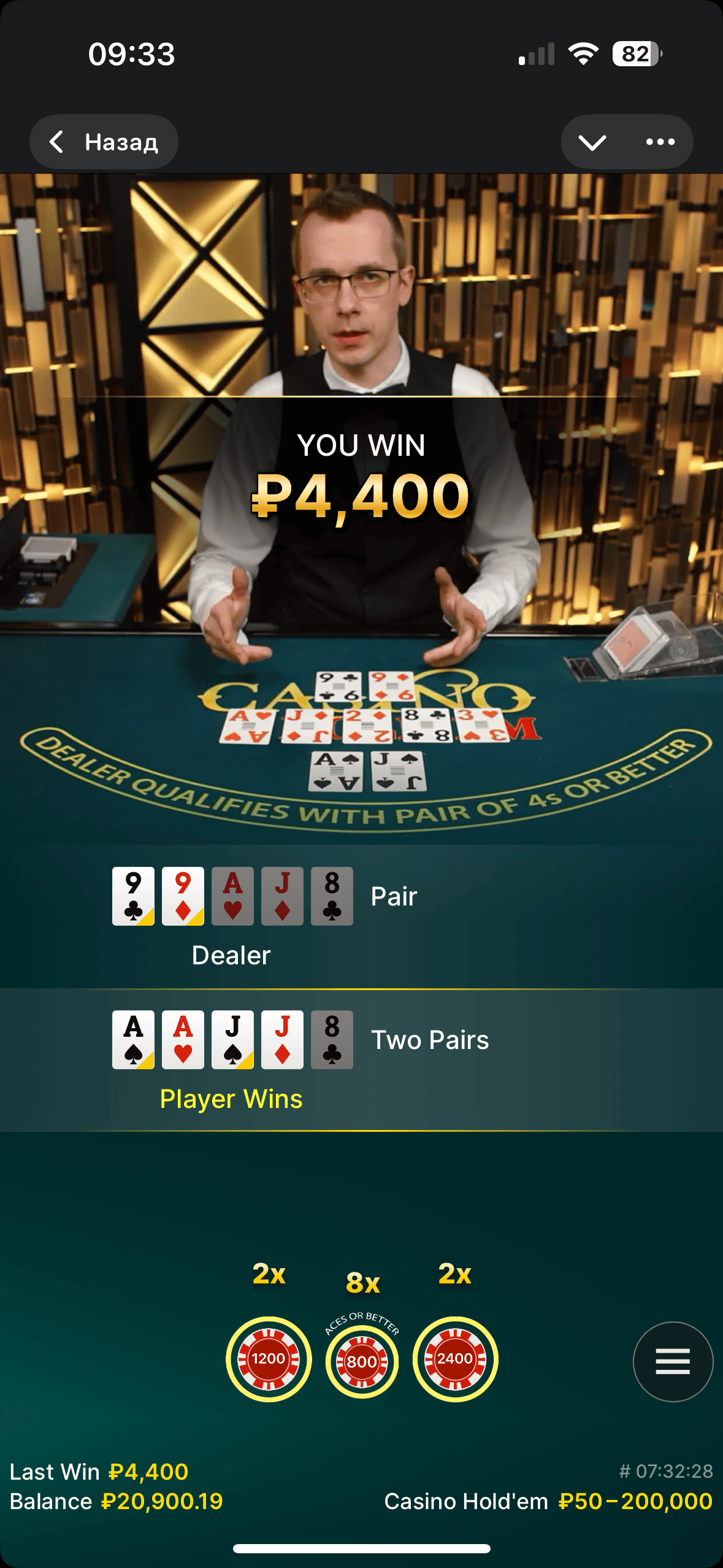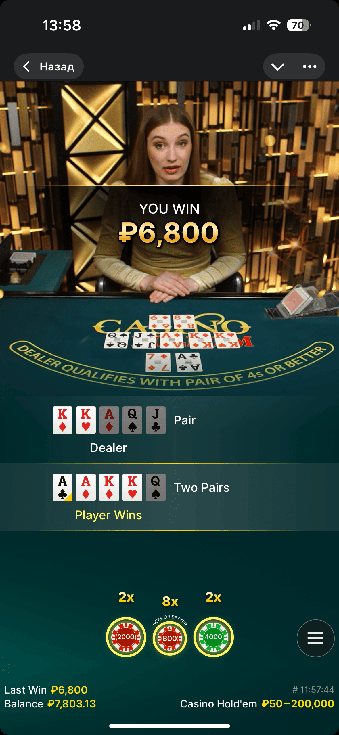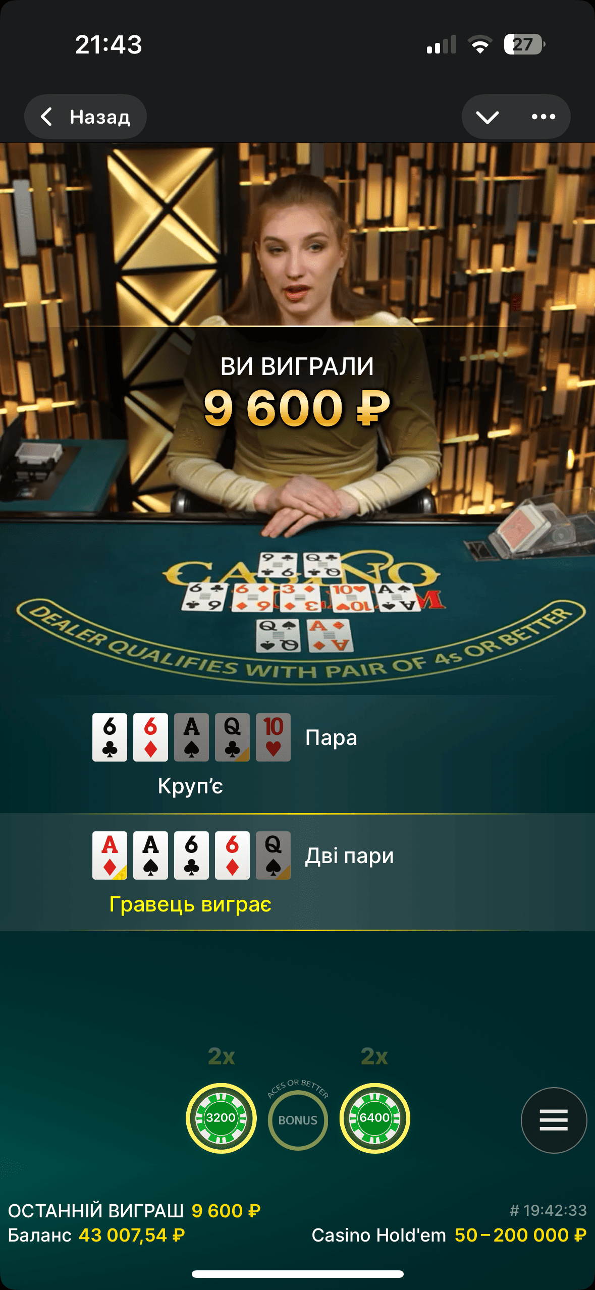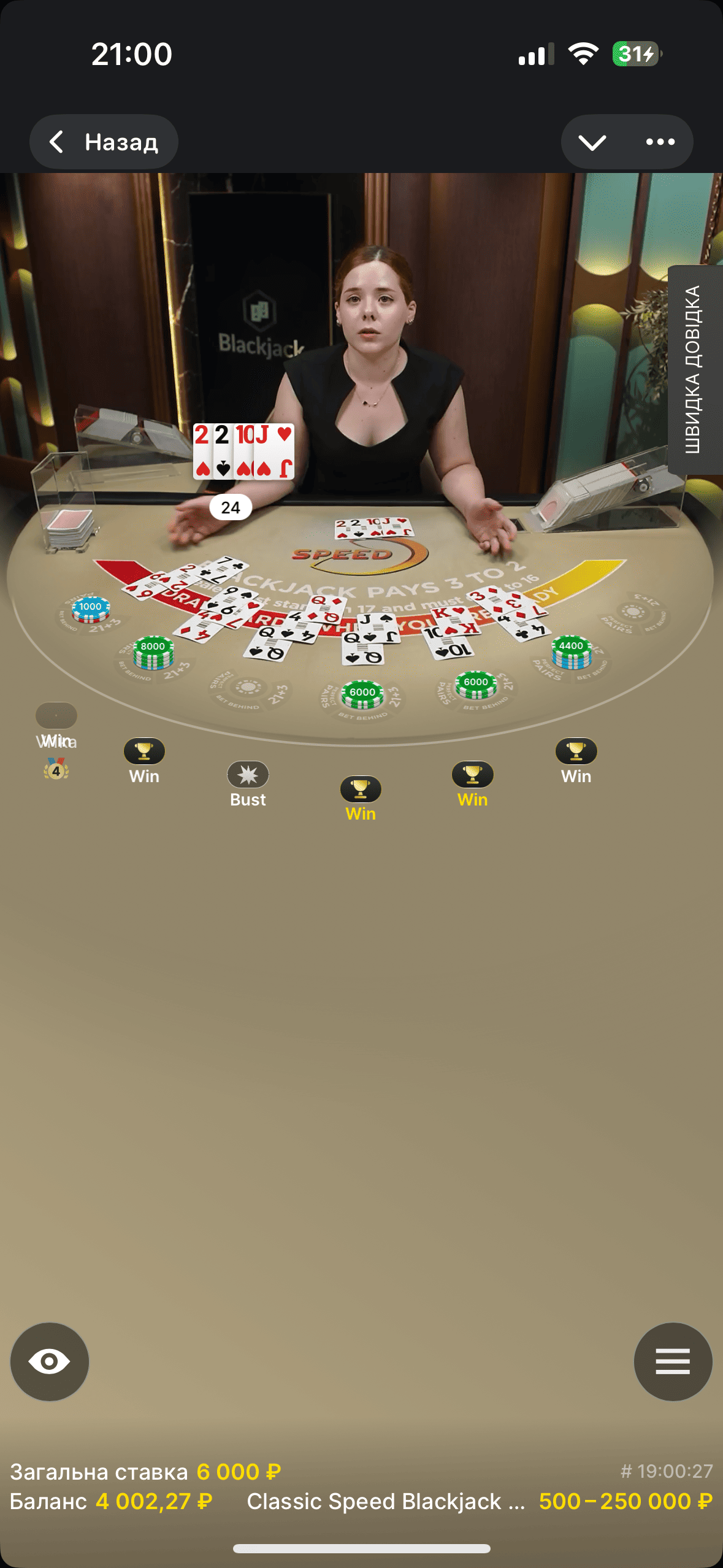 blackjack от evolution на jetton