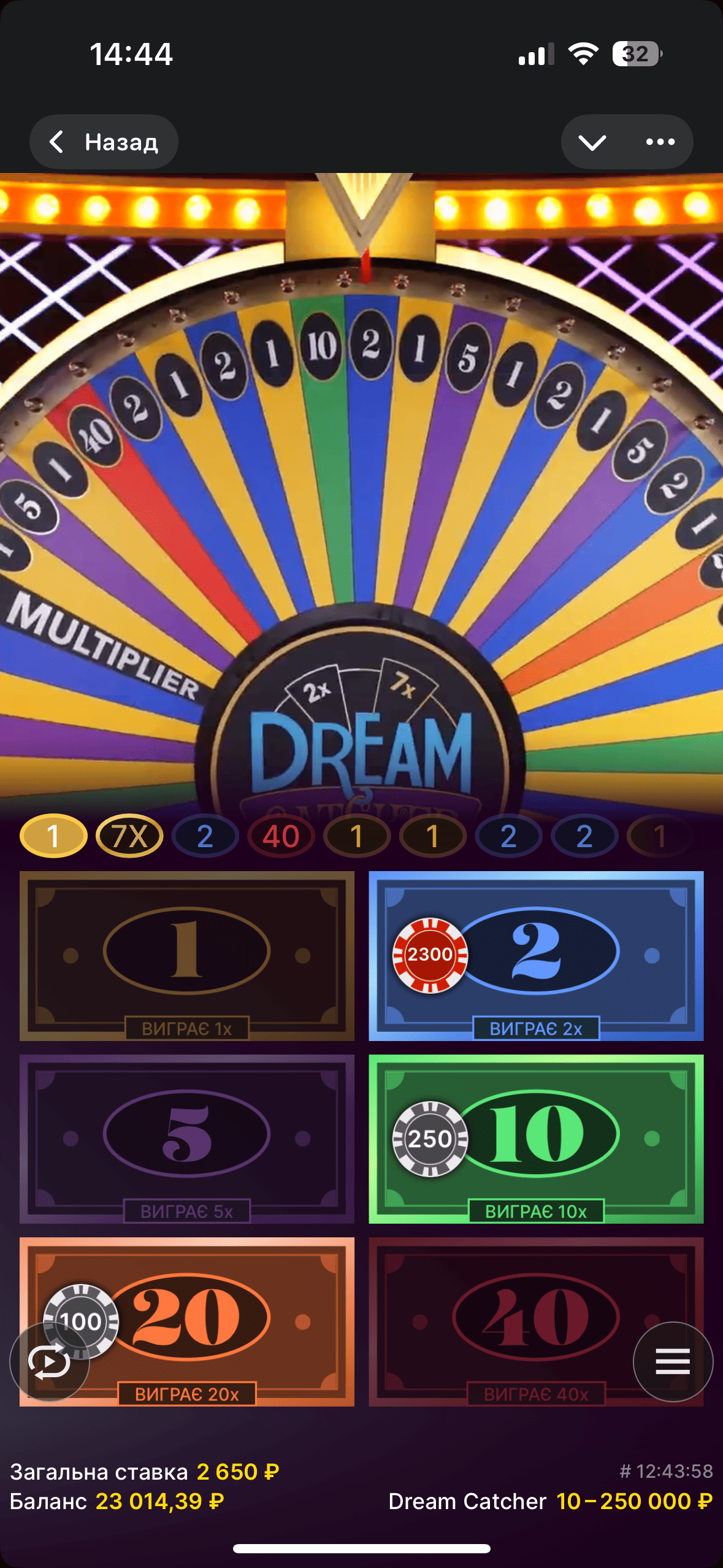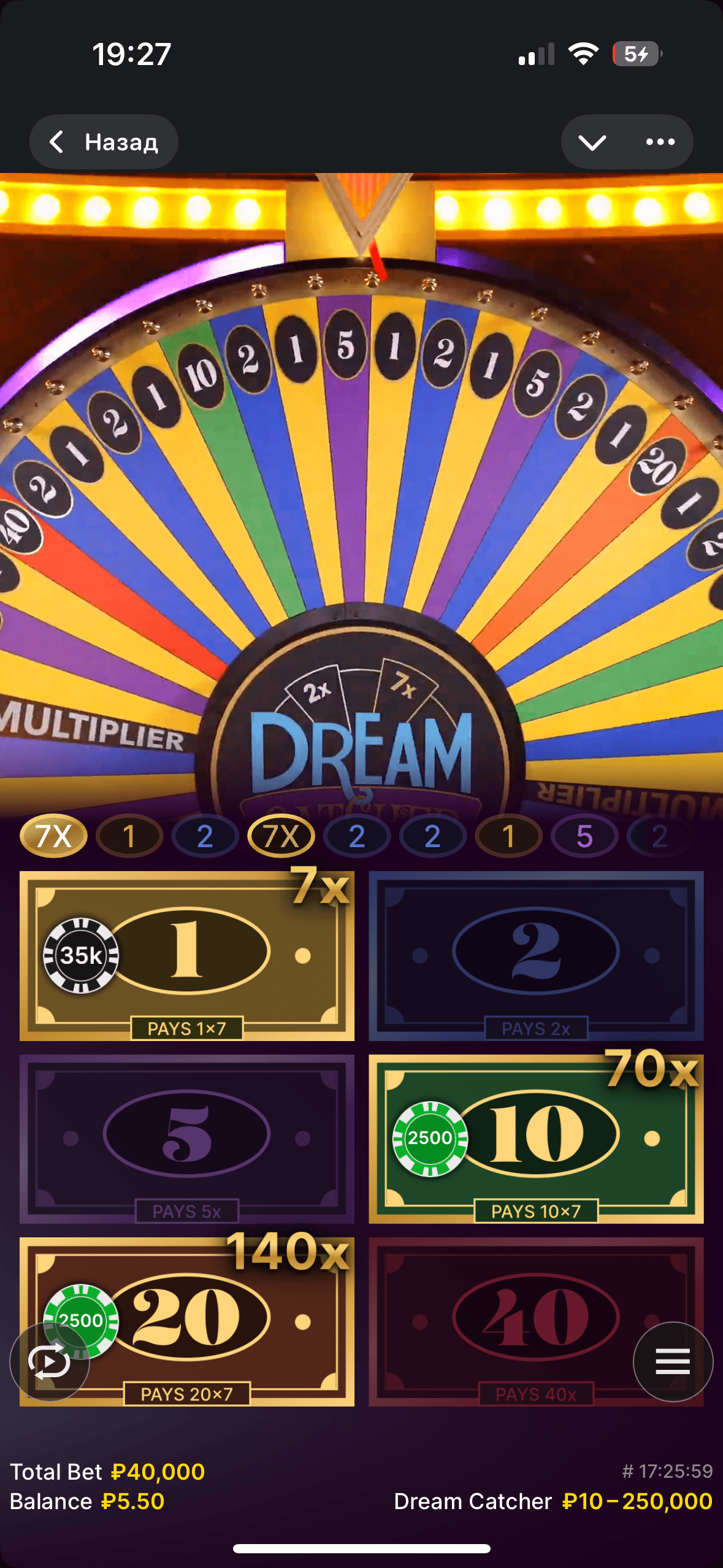 по чуйке поставил на 2, и немного занес в dream catcher от evolution на jetton