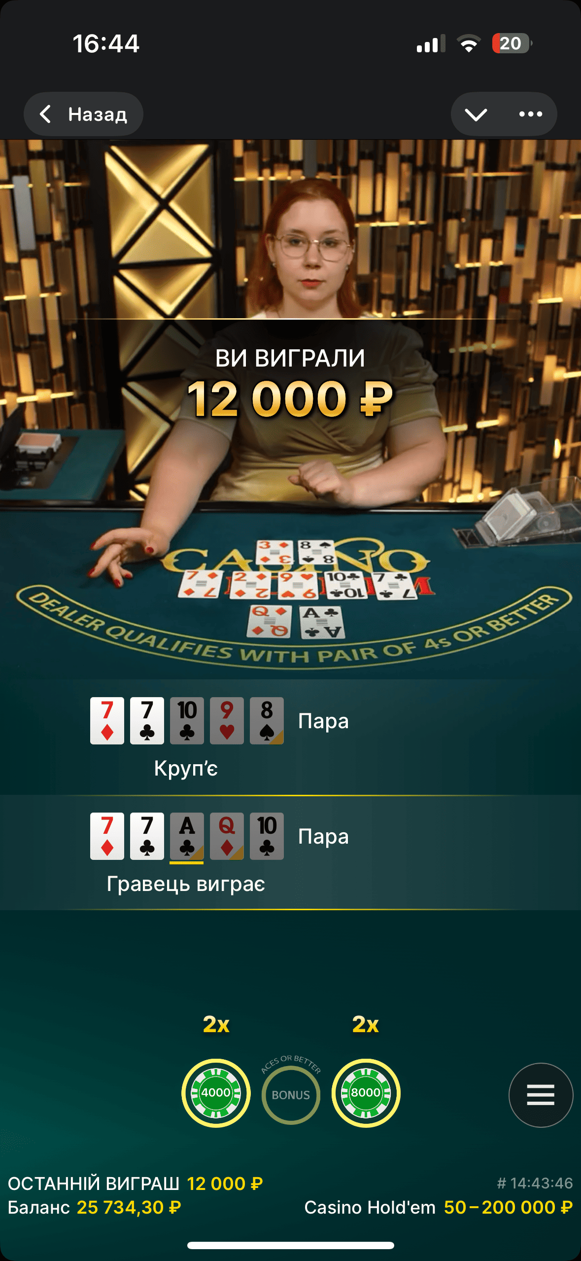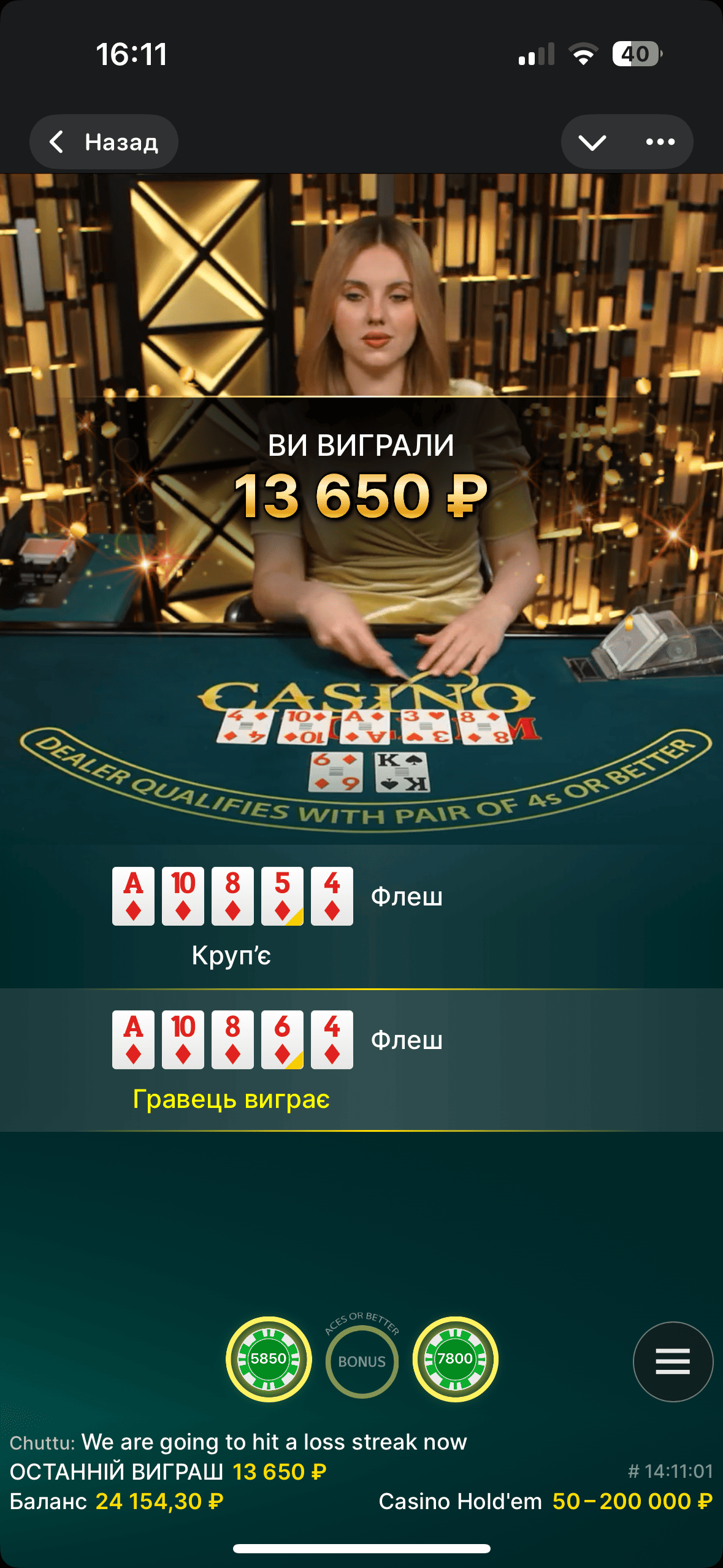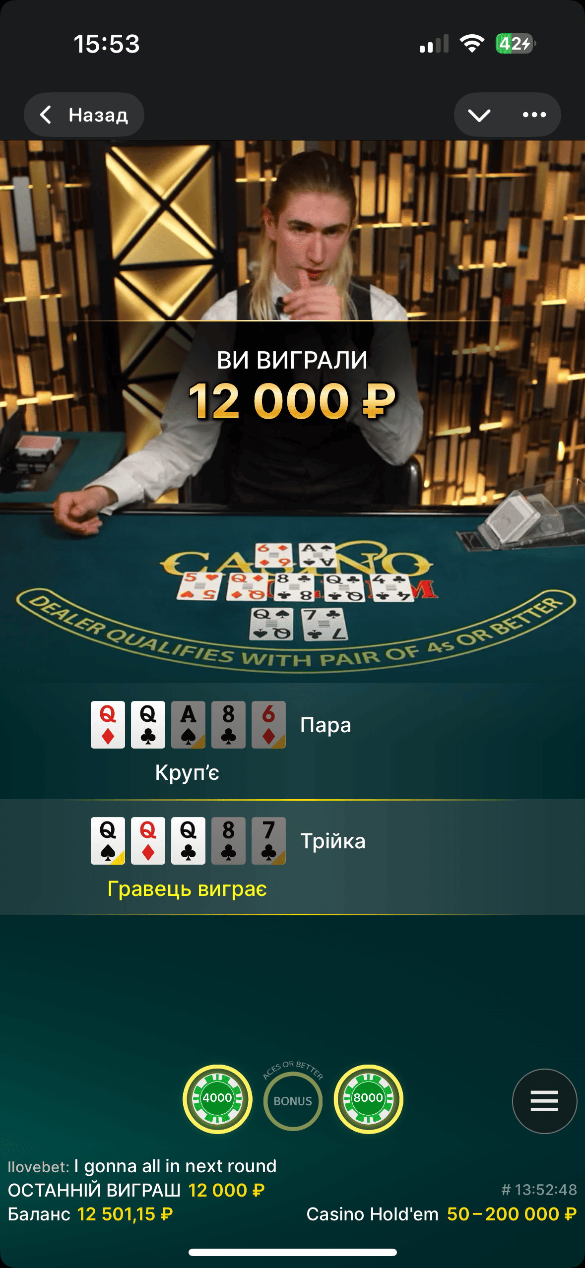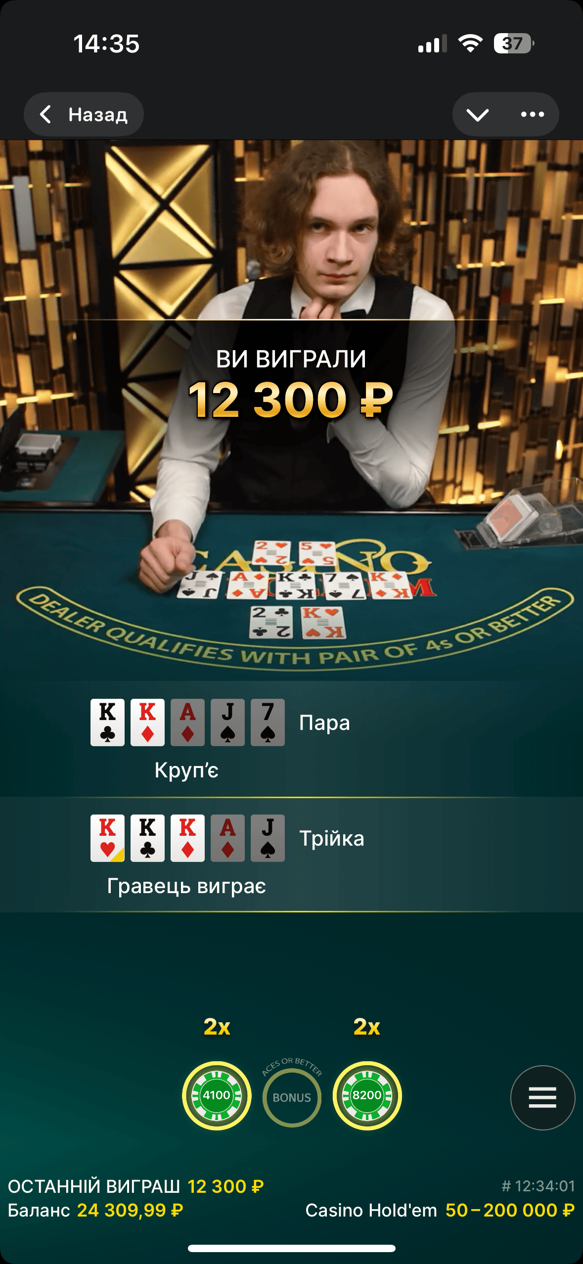 блекджек не подводит, на джетоне ставка была 2.6к, когда дало 11 сделал х2 и выиграл)