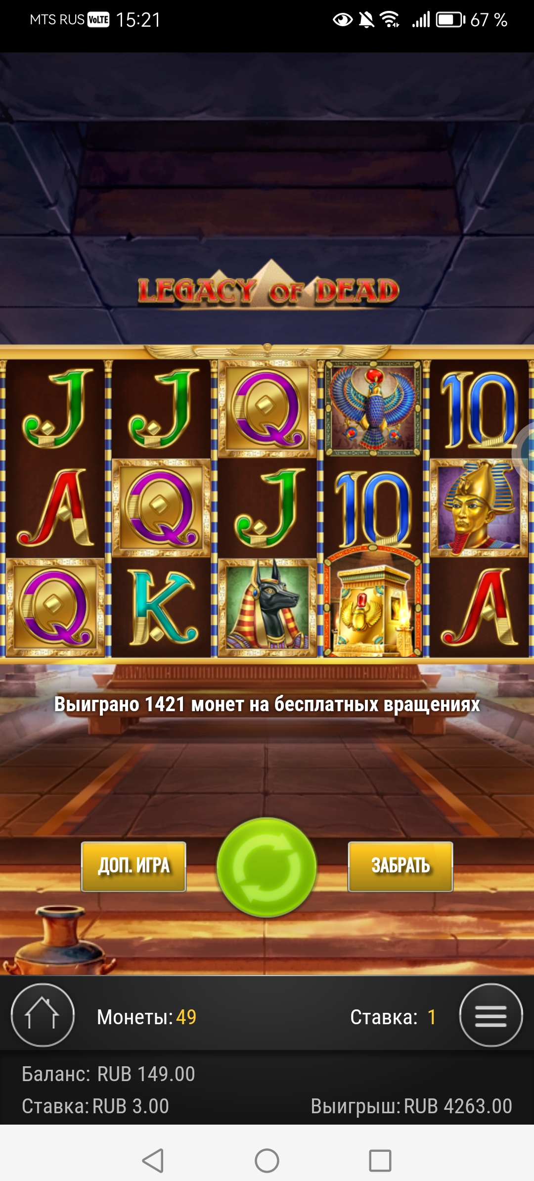 Казино водка, слот Legacy of dead по 3 рубля дад х1421