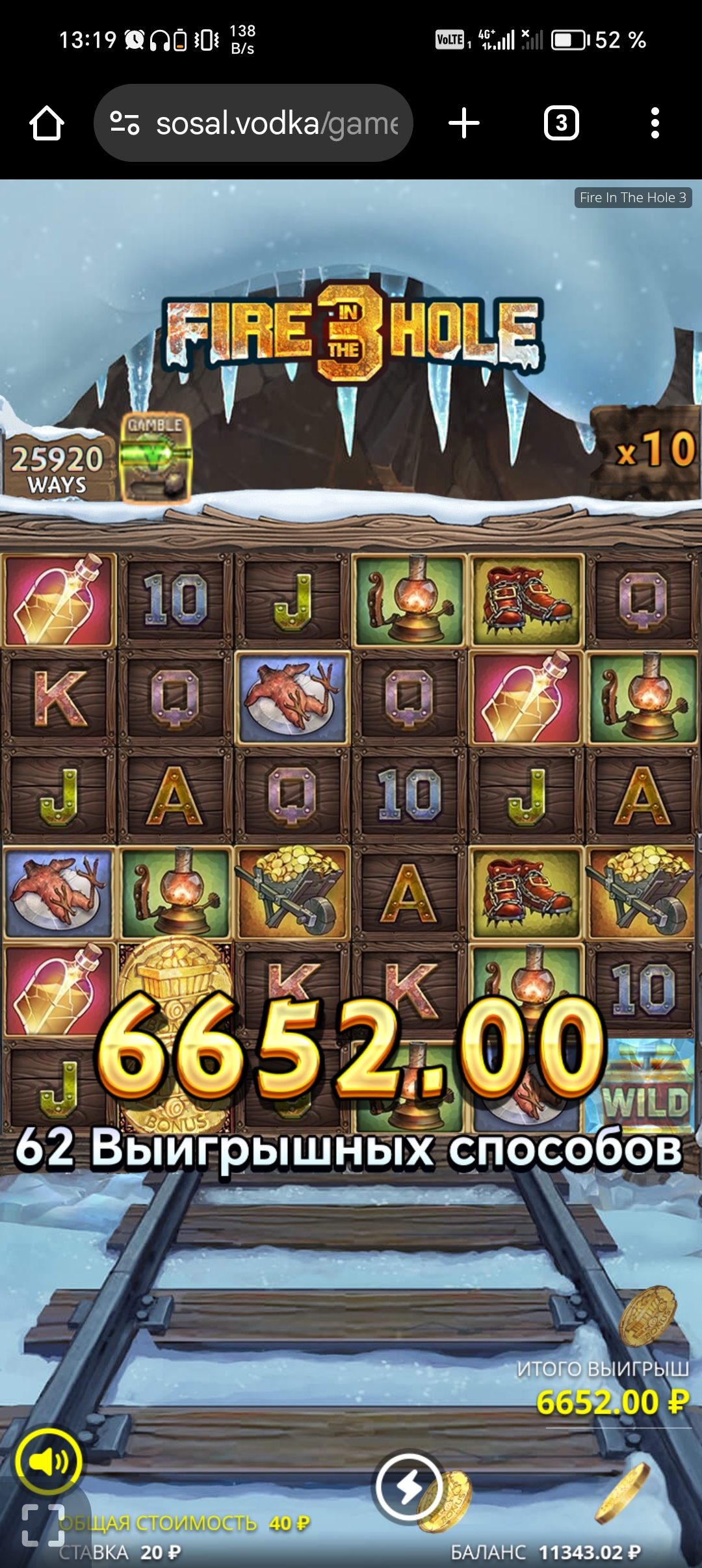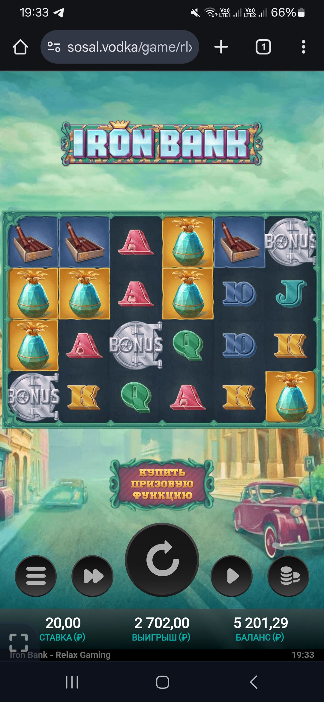 Не прям большой занос, но х330 дал. Не ожидал, что тут с простого спина так подкинуть может, без бонуса. Предложил гэмбл на бонус на 5 скатеров с шансом 40%, почти повёлся но руку успел остановить🤣
