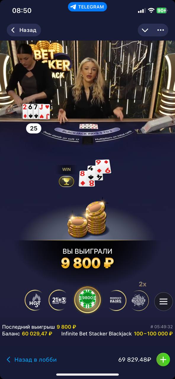 Занос в Bet Stacker Blackjack