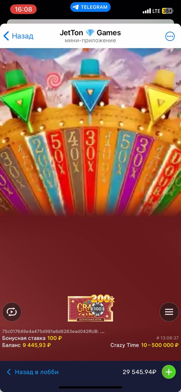 Занос в Crazy Time — cash Hunt под 20х